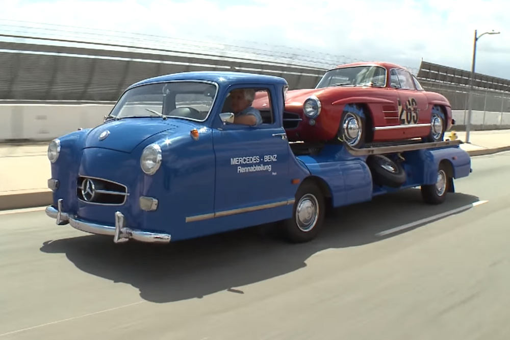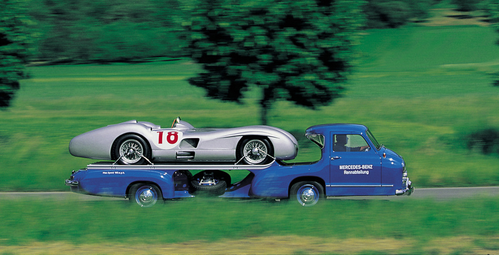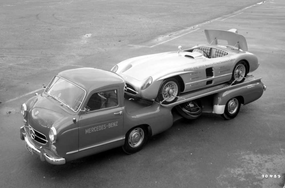 Pocos vehículos llaman tanto la atención como el Mercedes Renntransporter de la década de 1950. Este peculiar camión (aunque en realidad está basado en un coche) fue creado por Mercedes con el objetivo de poder trasladar, en el menor tiempo posible, sus bólidos de competición a sus instalaciones desde los circuitos en los que se encontraran. Así, gracias a su motor 3.0 de más de 190 CV (heredado, nada menos, que de un Mercedes 300 SL ‘alas de gaviota’) y a su aerodinámica carrocería, podía llegar a alcanzar los 170 km/h transportando un automóvil.