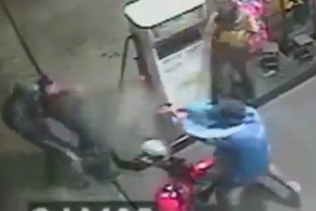 Advertencia, las imágenes que puedes ver a continuación son duras. Un policía brasileño dispara a un atracador en una gasolinera. El ladrón, que asaltó por la espalda a un individuo que estaba repostando su motocicleta mientras hablaba con otras tres personas, no se esperaba que uno de ellos fuese un policía fuera de servicio.