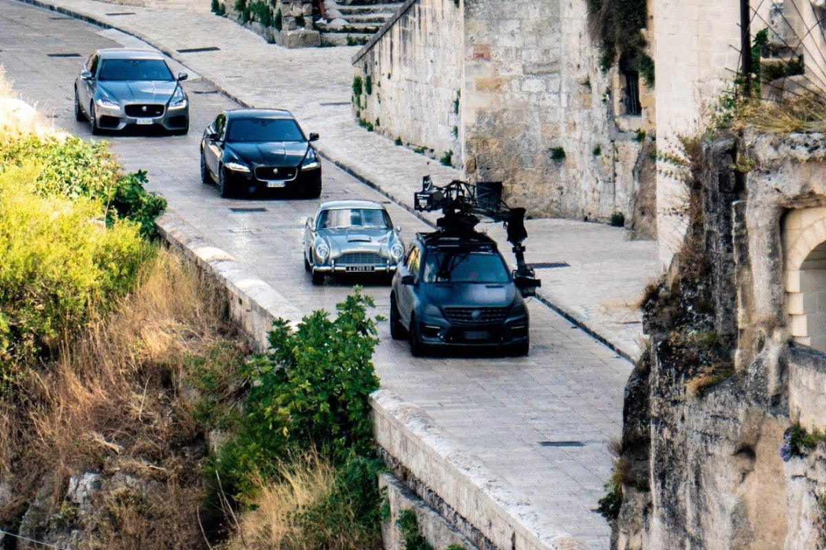 Los vídeos nos revelan, además de pequeñas secuencias de las persecuciones que nos ofrecerá ‘No time to die’ (Sin tiempo para morir), también nos desvela algunos de los coches que aparecerán en la película. En todos estos vídeos grabagos en las calles de Matera, al sur de Italia, podemos ver el Aston Martin DB5 que conducirán Bond mientras es perseguido por una pareja de Jaguar XF y una motocicleta.