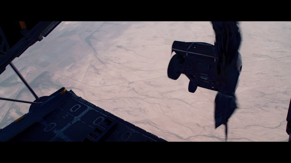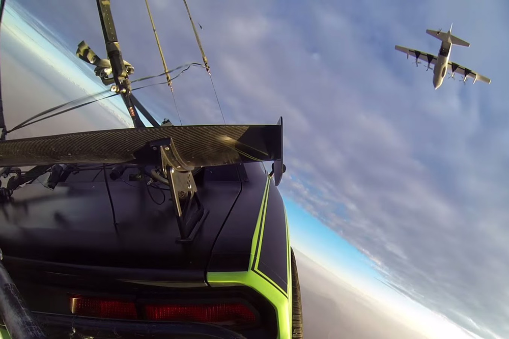 Pues ya te podemos avanzar que sí, para grabar ‘A todo gas 7’ tiraron coches desde un avión en pleno vuelo. Los coches alcanzaron velocidades superiores a los 200 km/h después de los tiraran desde la bodega de carga de un Lockheed C-130 Hércules que volaba a más de 3.600 metros de altura. Eso sí, no te pienses que los soltaron sin más, ninguno de los vehículos utilizados resultó dañado gracias a que emplearon unos enormes paracaídas para frenarlos (aquí puedes ver los coches de 'A todo gas 7').