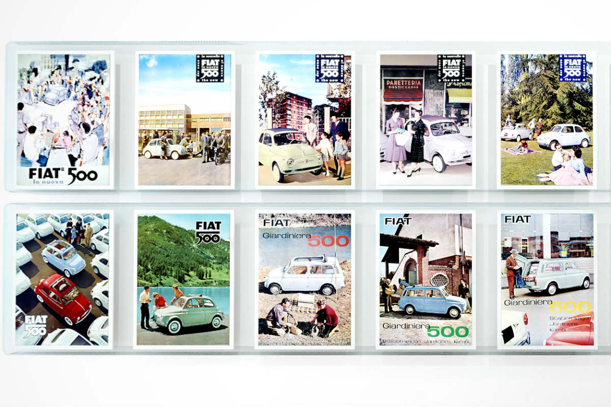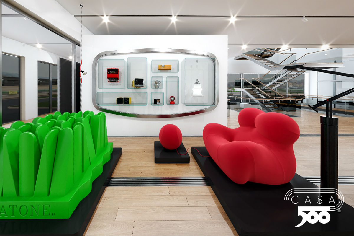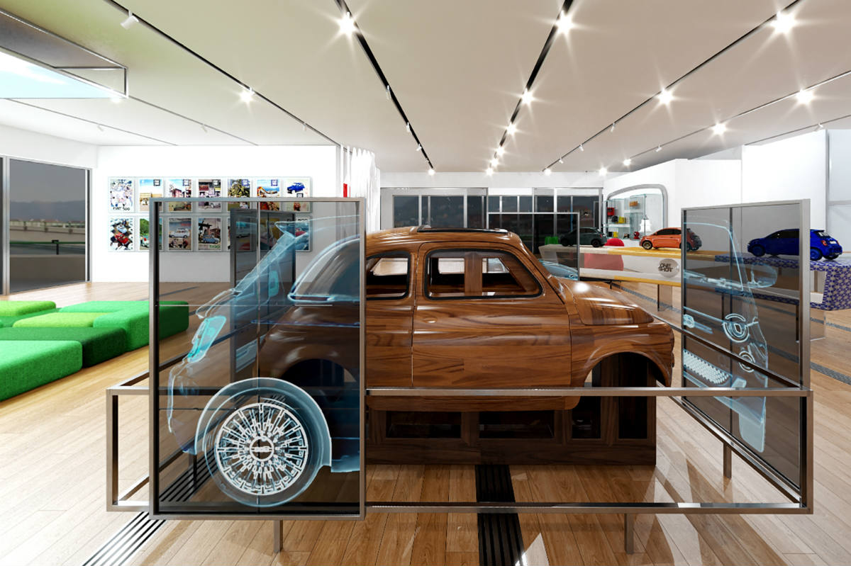 El recorrido comienza con el área dedicada al legado industrial y cultural del Fiat 500, que se ha reinterpretado a través de tres generaciones: el vehículo accesible en 1957, su renovación en 2007 y el eléctrico en 2020. En el área Made of Italy se presentan objetos que son símbolos del diseño italiano y que han alterado las reglas del juego. En el área dedicada a la historia, se pueden explorar entrevistas, anuncios, eventos, premios y bocetos que ilustran la evolución del modelo.