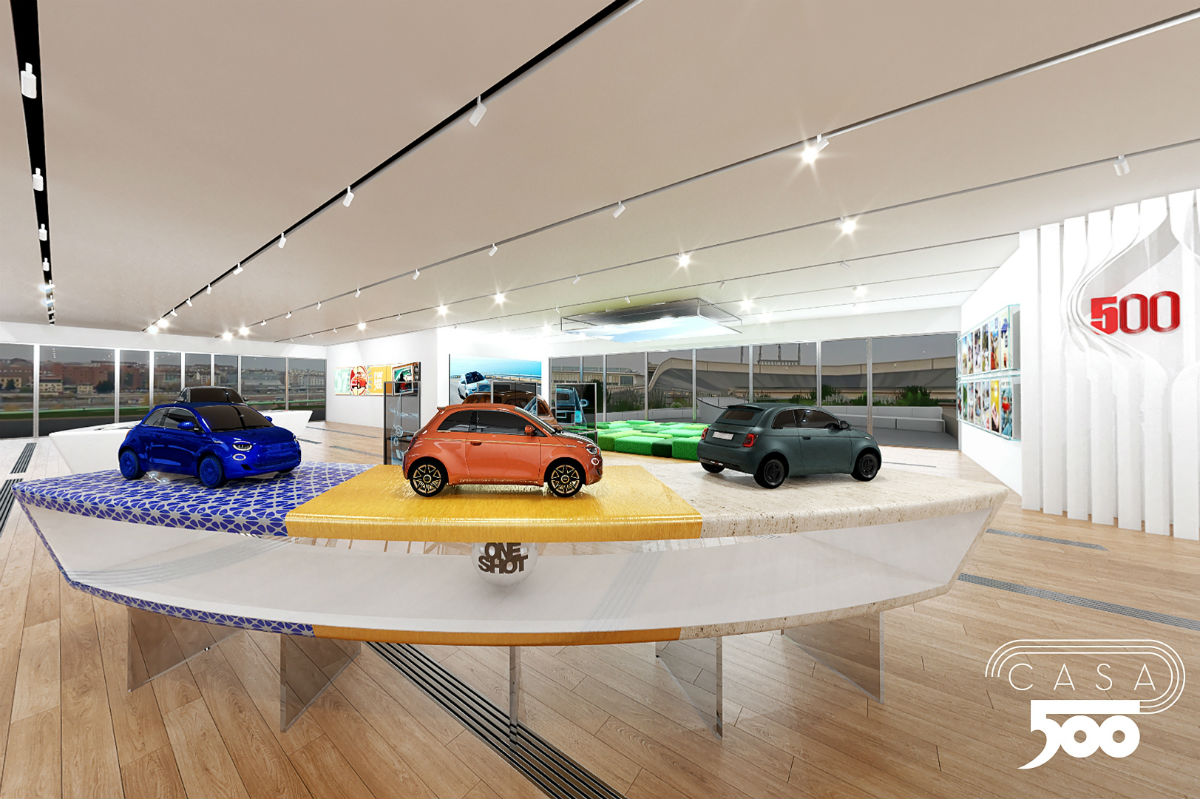 En la dedicada al Nuevo 500 todo gira en torno al vehículo y los visitantes podrán conocer hasta el mínimo detalle gracias a una experiencia en 3D. En la zona One Off están presentes las tres interpretaciones creadas por Armani, Bvlgari y Kartell. Por último, el Área de descanso permite relajarse bajo la instalación en el techo que recuerda un gran cielo iluminado.