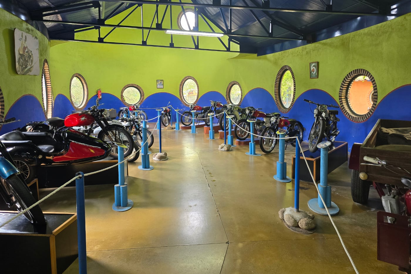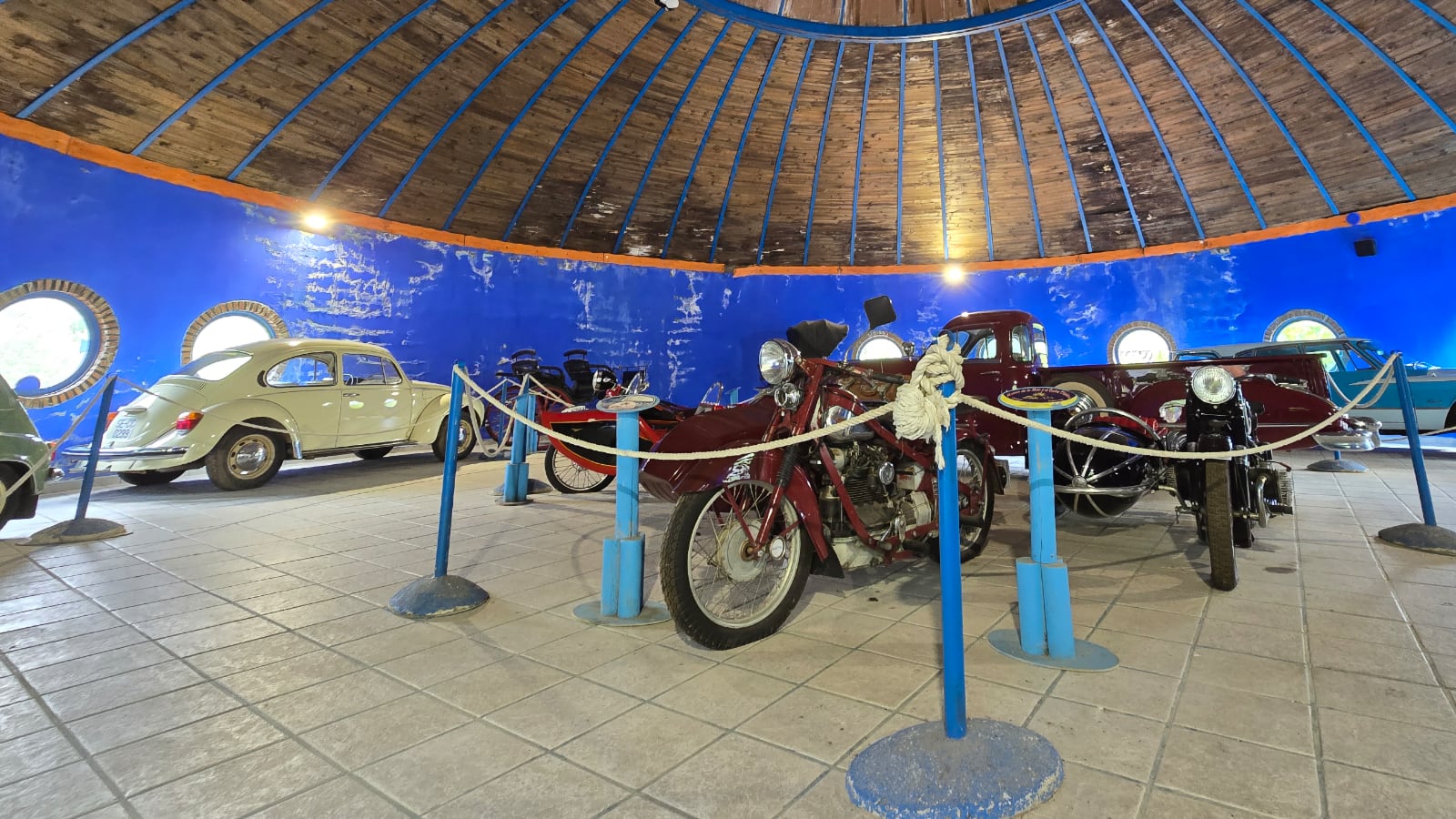Después de pensar si entrar o no, nos decidimos por conocerlo después de leer que recoge más de 300 unidades entre coches, motos, carruajes, triciclos, coches de bebé y coches de muñecas repartidos en ocho pabellones, y como también anuncian en su tríptico, es el primer museo de la moto y el coche clásico de España.