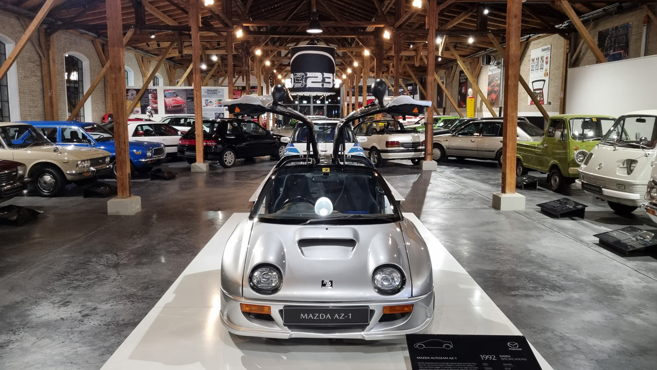 Es posible recorrer gran parte de la historia de Mazda con los coches expuestos. Desde el motocarro GB Dreidad de 1950, pasando por el Mazda R360, su primer coche de cuatro ruedas; el Pathfinder XV-1 de 1972, su primera incursión en el mercado SUV; el Autocar Parkway de 1976, un autobús con motor rotativo; el AZ-1, que esta unidad en concreto fue traída a Europa por piezas; o por todas las generaciones del RX-7 (por aquí te dejo la prueba del Mazda RX-7 FB, el primero de todos) y MX-5.