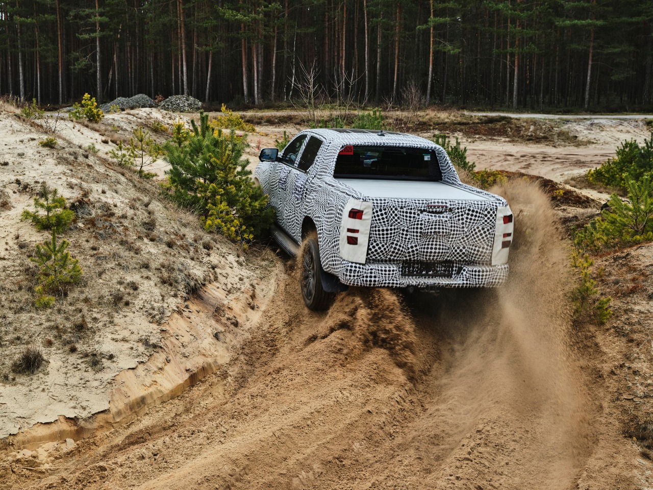El Amarok 2023 será 96 mm más largo (5.350 mm) y ofrecerá 125 mm (3.220 mm) de distancia entre ejes que su predecesor. En la versión de doble cabina, el nuevo Amarok también será 2 mm (1.880 mm) más alto y 34 mm (1.910 mm) más estrecho. Contará con voladizos cortos delante y atrás para mejorar sus ángulos de entrada y salida, algo que lo hará aún más eficaz en conducción off-road.