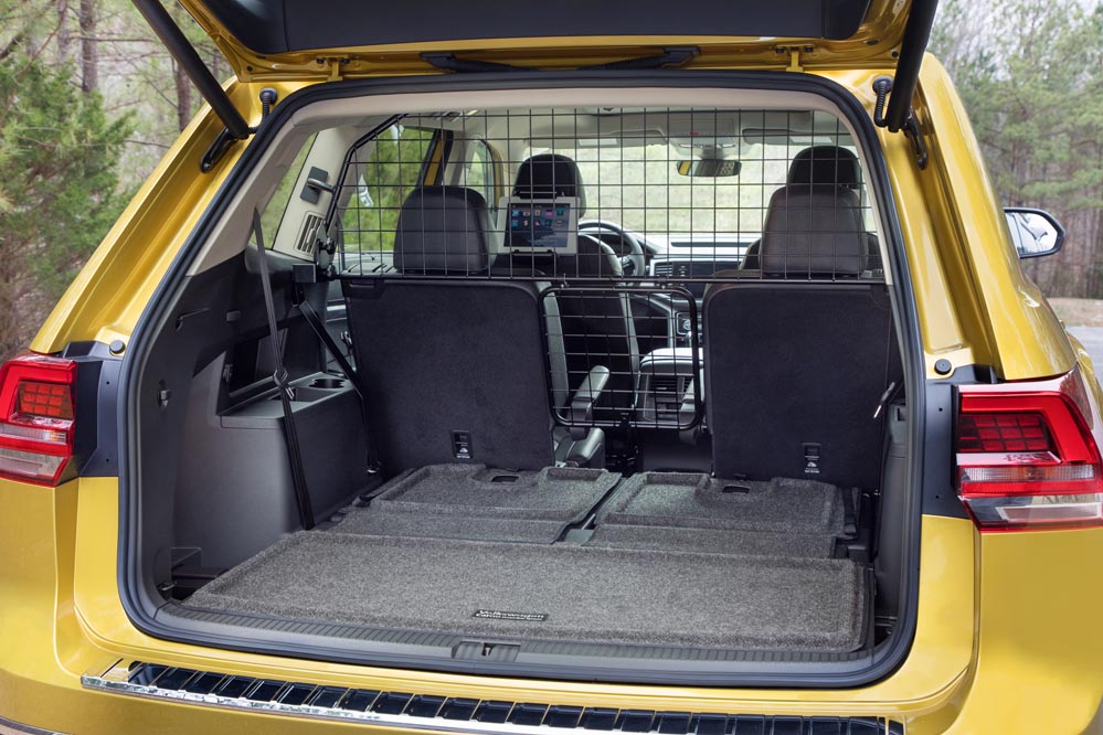 Dentro de este todocamino de grandes dimensiones, que por el momento solo se comercializará en EE.UU., encontramos una rejilla protectora de mascotas tras la segunda fila de asientos y soportes genéricos para tablets.