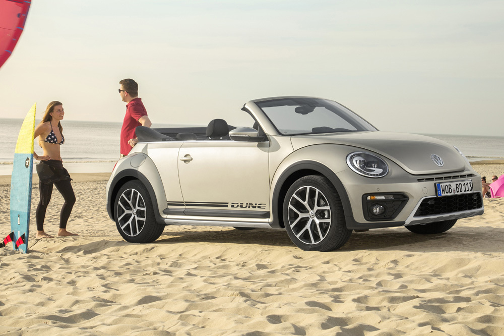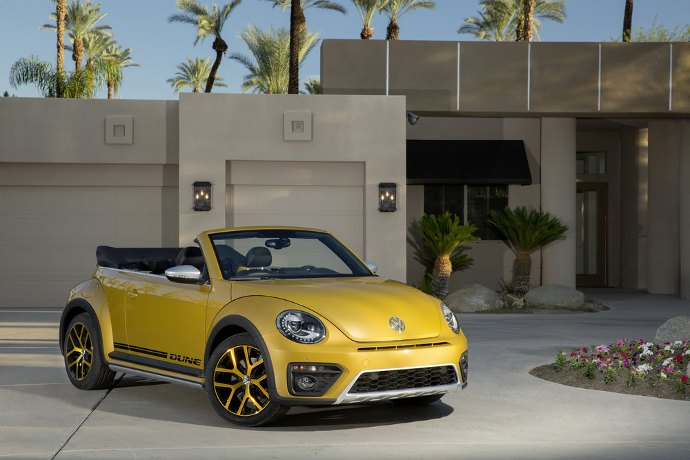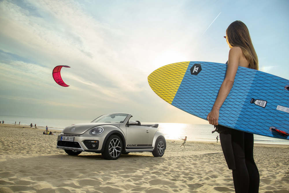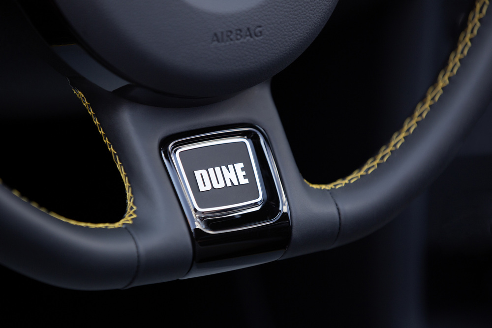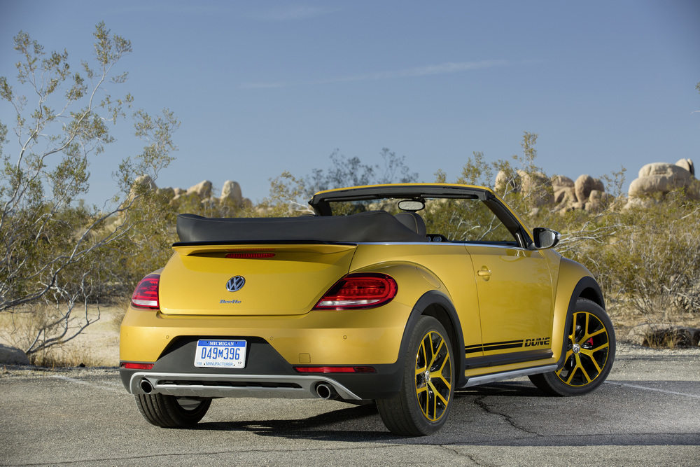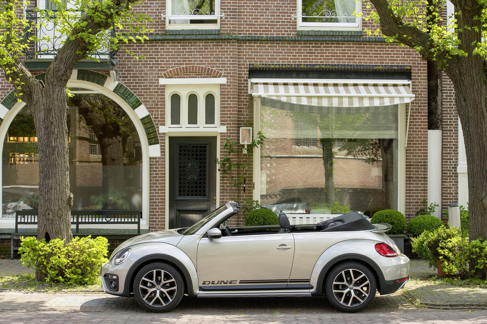 Otros puntos destacados en el Volkswagen Beetle Dune 2016 son la altura de la carrocería, unas vías ligeramente más anchas y las llantas de 18 pulgadas estilo 'Canyon' con neumáticos aptos para todas las estaciones. En cuanto al equipamiento, se basa en el acabado Design del Beetle sobre el que añade el encendido de luces automático con luz de conducción diurna, asientos deportivos delanteros calefactables con apoyo lumbar, el espejo de cortesía iluminado, las dos lámparas de lectura delanteras, el control automático de la velocidad, el retrovisor interior antideslumbrante automático, el sensor de lluvia y los sistemas "ParkPilot" y de arranque en pendiente.
