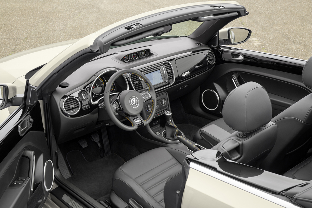 Una vez en el habitáculo, el Beetle Dune 2016 presenta un volante multifunción y asientos deportivos de cuero con costuras en contraste de color naranja. El coche también cuenta con un sistema de infoentretenimiento MIB II comandado por una pantalla de 6,3 pulgadas, así como compatibilidad con Apple CarPlay y Android Auto, que opcionalmente puede incluir navegador en caso de escoger el denominado Discovery Media.