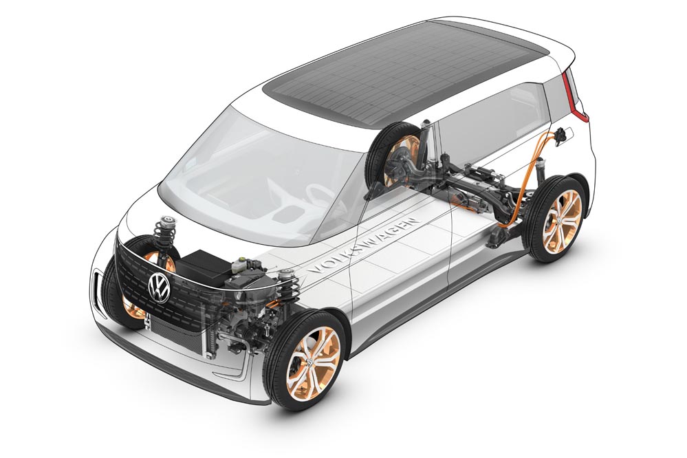 El Volkswagen Budd-e concept, que toma la plataforma modular MQB –puede alojar baterías de gran tamaño y componentes para el sistema de propulsión eléctrica-, tiene una longitud de 4,59 metros, una anchura de 1,93 metros, una altura de 1,83 metros y una distancia entre ejes de 3,15 metros, por lo que se situaría por tamaño entre la Touran y la Multivan T6.