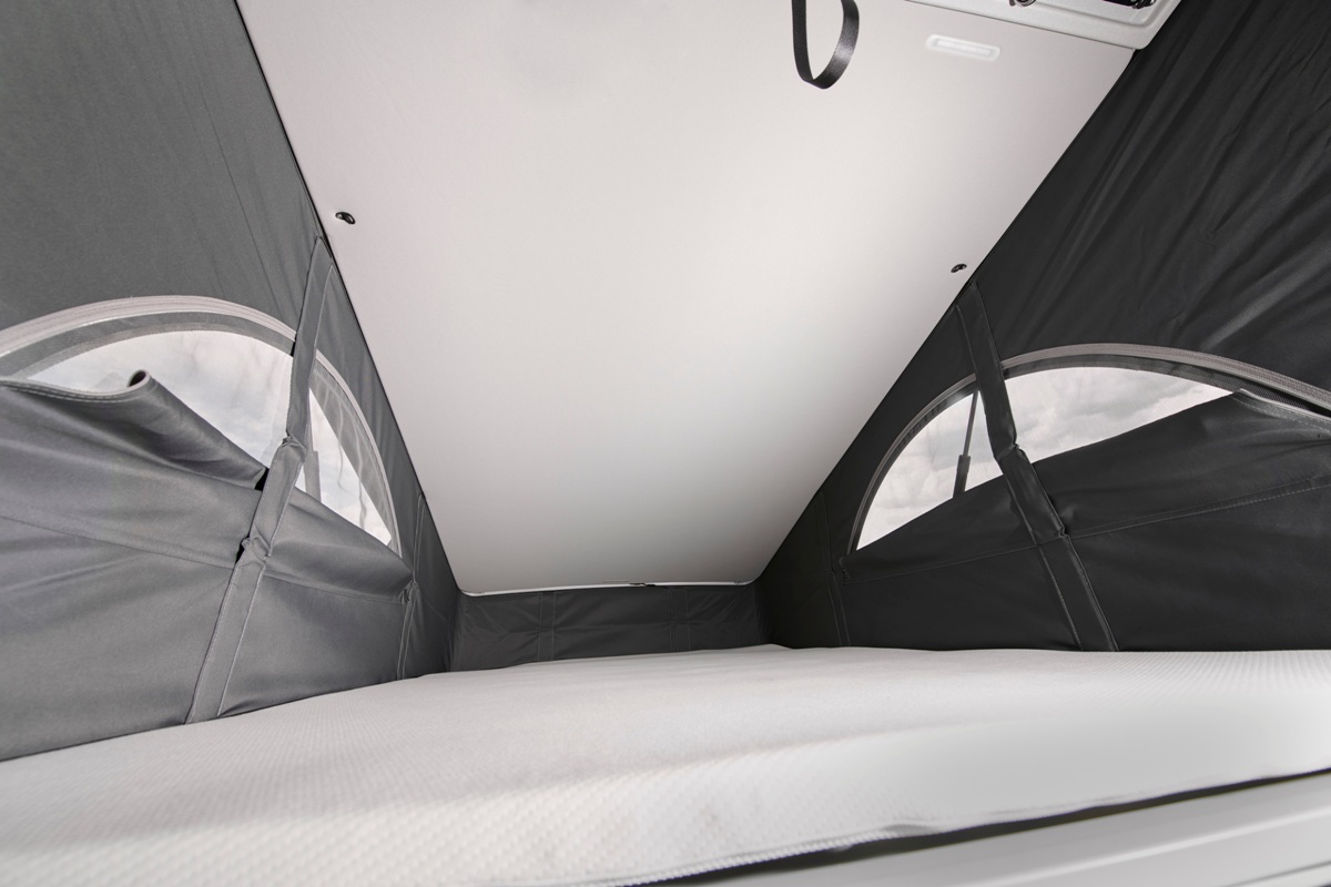- Techo levadizo electrohidráulico, con 3 ventanillas y una abertura delantera, fuelle en Basalt Grey