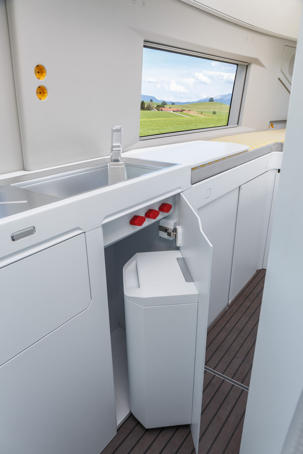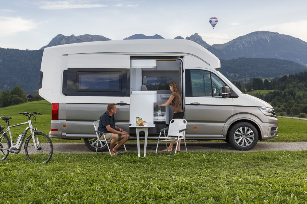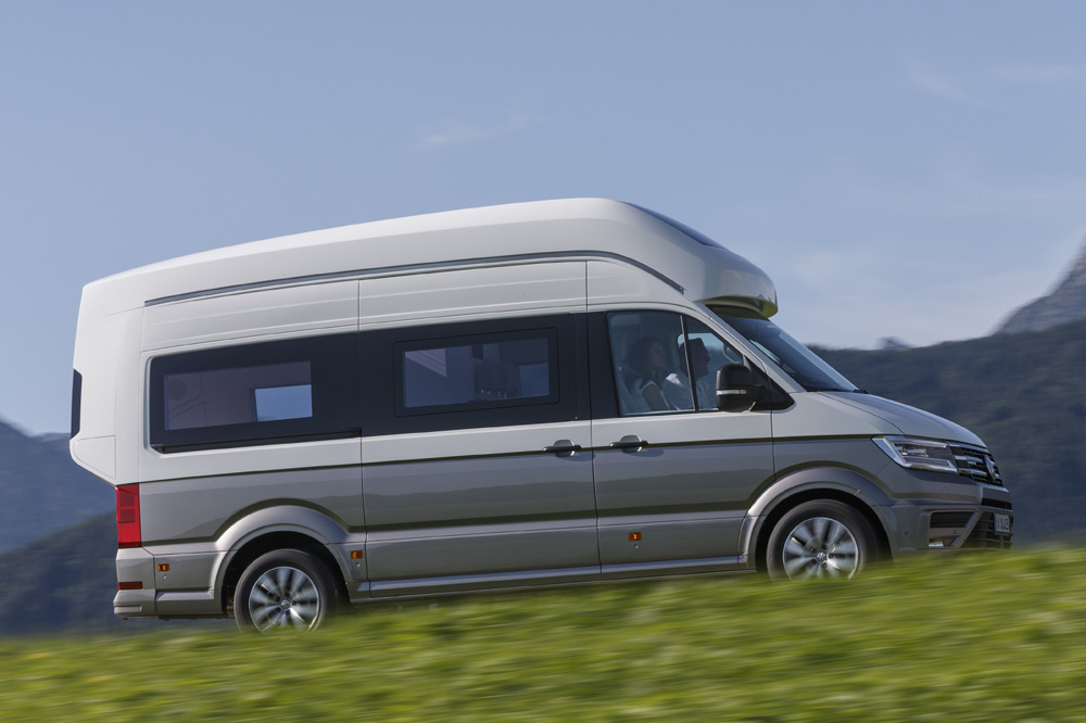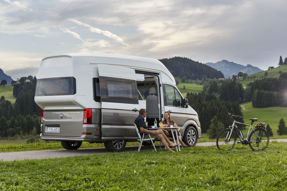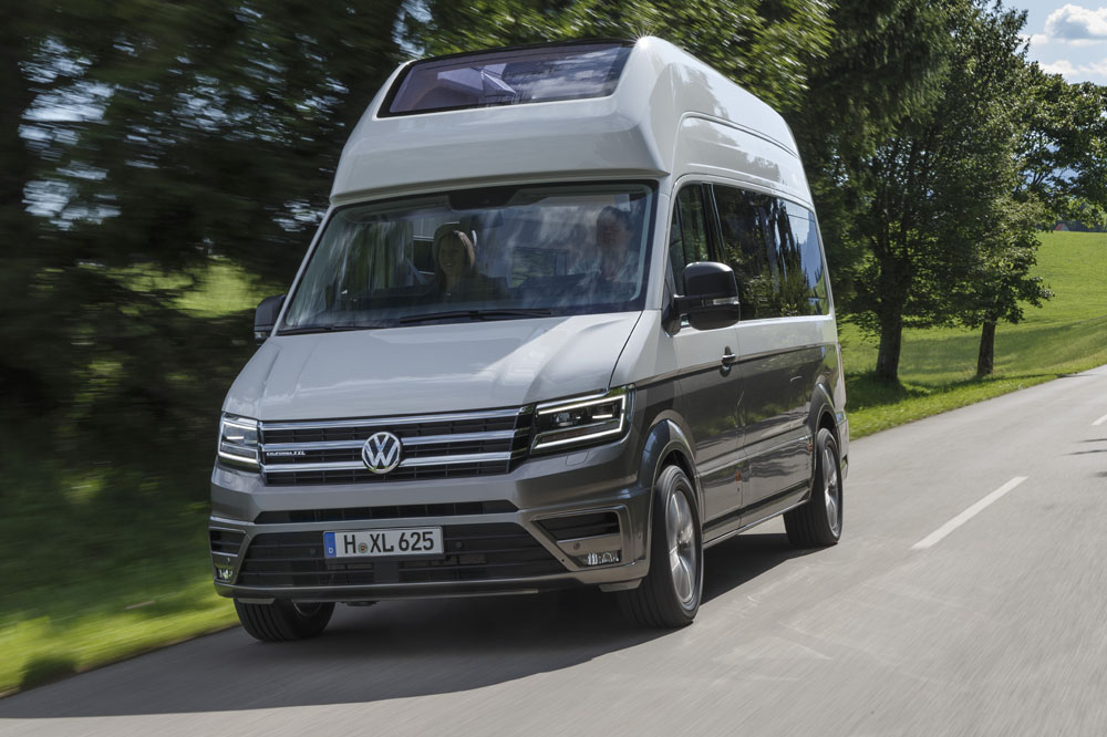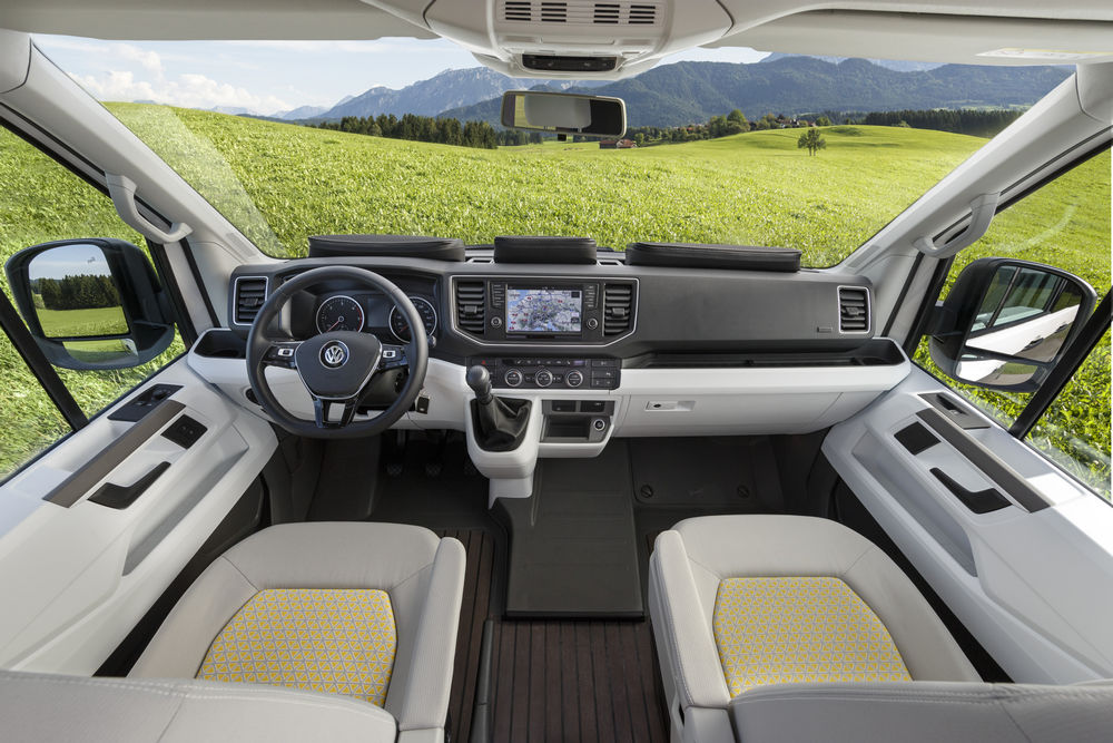 La cita elegida para su presentación ha sido el Salón de la Caravana de Düsseldorf 2017 -cerrará el 3 de septiembre-, así que ya te podemos contar todos los datos y mostrar las imágenes de esta camper a gran escala. Y decimos a gran escala porque ha abandonado la plataforma Multivan (aquí tienes la prueba de la VW California T6) para asentarse en la del Crafter, de ahí que sea mucho más amplia y ofrezca facilidades tales como baño húmedo retráctil con ducha y WC, cocina completa con nevera, una cama de unos dos metros de largo y zonas para trabajar, aire acondicionado o calefacción, sin olvidaros de los típicos asientos con un giro de 180 grados.