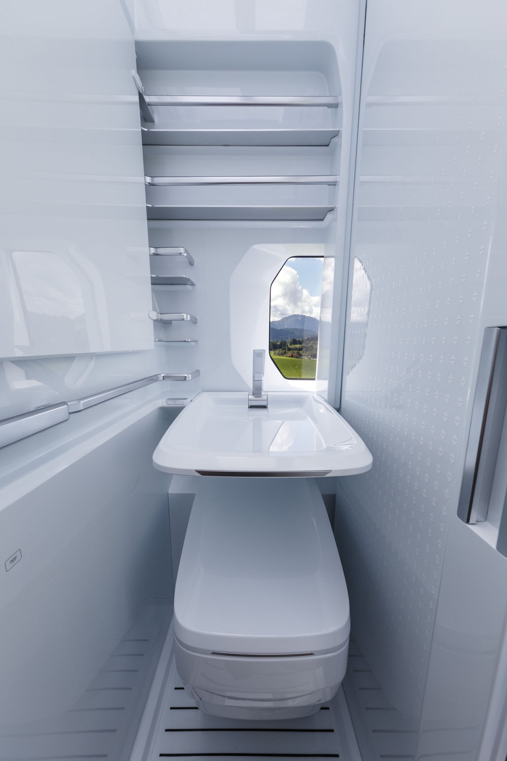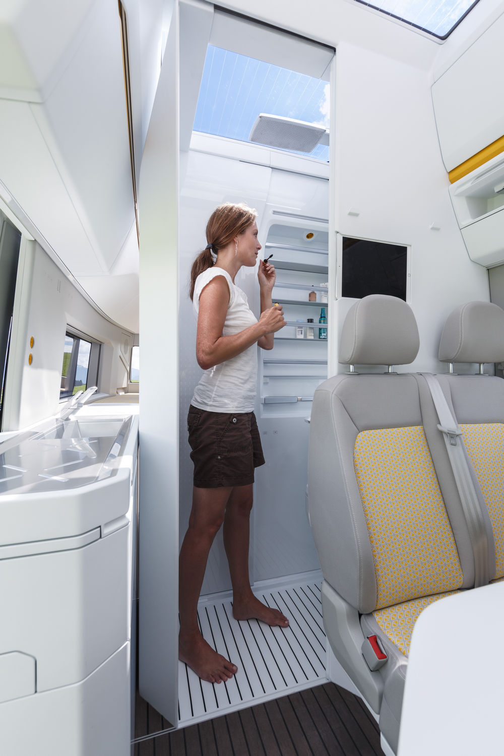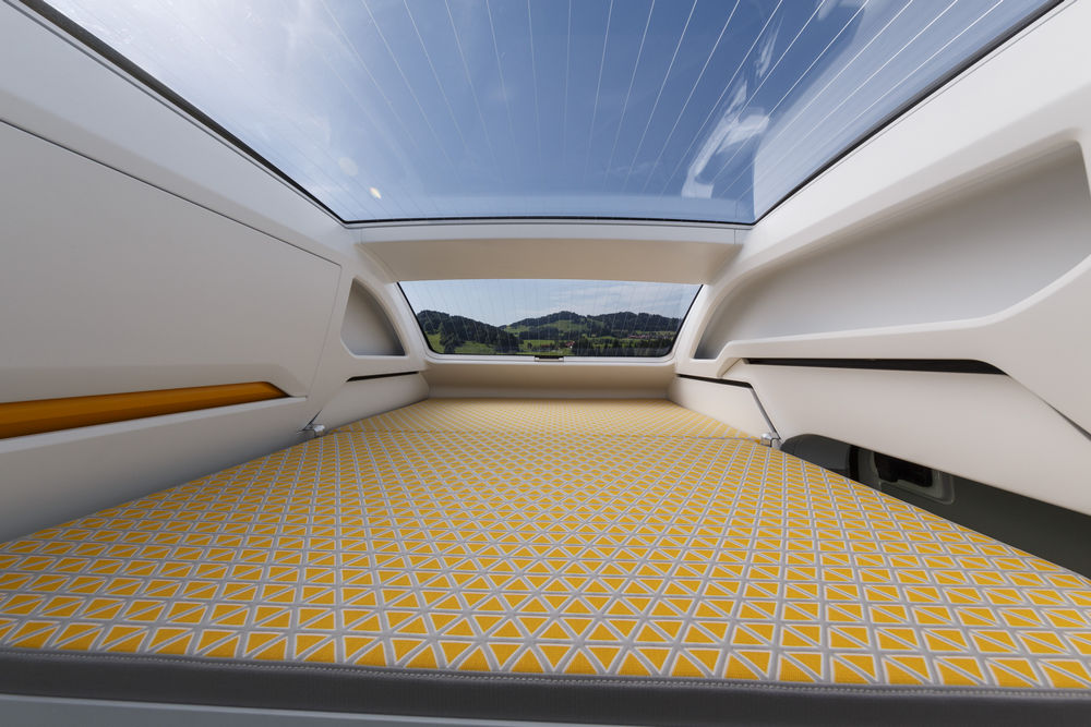 Llama poderosamente la atención el amplio techo acristalado, que aporta una gran luminosidad en el habitáculo. También dispone de un sistema de calefacción en el piso o de múltiples puntos de luz, todos ellos así como las múltiples funciones del vehículo controlables desde una tableta gracias al desarrollo de una aplicación.