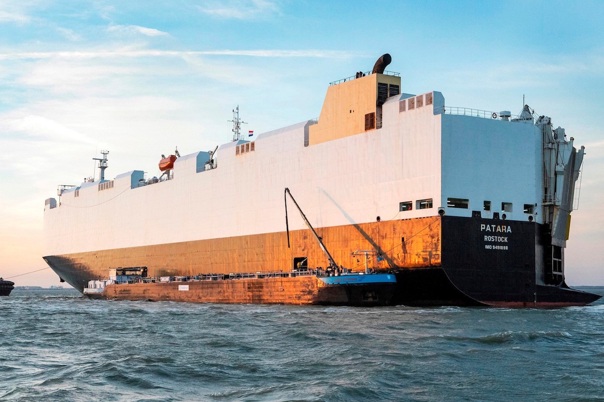 Los dos cargueros que emplea Volkswagen miden 180 metros de largo y recurren a un motor MAN diésel capaz de erogar 19.000 CV. Para reducir sus emisiones de CO2 en hasta un 85%, los de Stuttgart han hecho uso de aceite usado de restaurantes y GNL -Gas Natural Licuado-.
