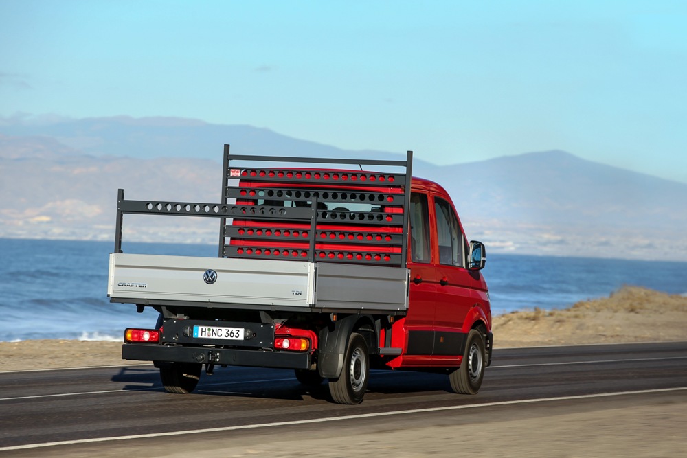 Por otro lado, el Volkswagen Crafter 2017 destinado al transporte profesional ofrece diversas soluciones prácticas para el trabajador, como la puerta corrediza de amplia apertura cuya altura baja del borde carga es de 570 mm en las versiones de tracción delantera, así como una apertura opcional de 270º para las puertas traseras. Además, la mercancía se puede asegurar desde cualquier ángulo mediante los diferentes anclajes diferentes.