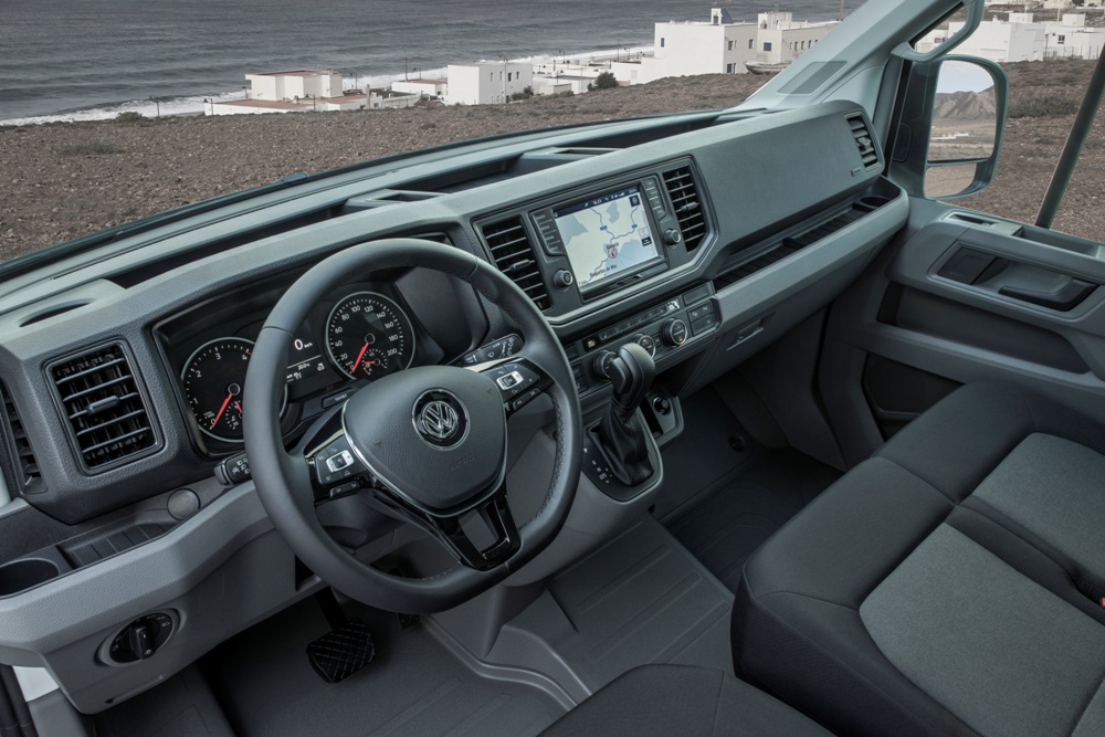 En el interior encontramos asientos ergonómicos oscilantes con apoyo lumbar y función masaje acompañados de los diferentes compartimentos. Además, diversos asistentes han sido incluidos en el Volkswagen Crafter 2017 con el fin de facilitar la conducción, como es el Lane Assist, el Park Assist o el Trailer Assist, así como el sistema de frenado de emergencia Front Assist, el sistema de regulación automática de distancia, el sistema de frenada anticolisiones múltiples, el sistema de compensación para viento lateral, detector de fatiga, un sistema protector de puntos muertos basados en sensores y la amortiguación automática de las luces de carretera, entre otros.