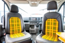El habitáculo, además de convertirse rápidamente en un hogar, puede ser forrado con cuero y tartán, un tipo de tela muy representativa dentro de Volkswagen. Ducha, cocina, baño...todo lo que puedes imaginar está dentro de la Volkswagen Crafter MaxTraxx 4x4.