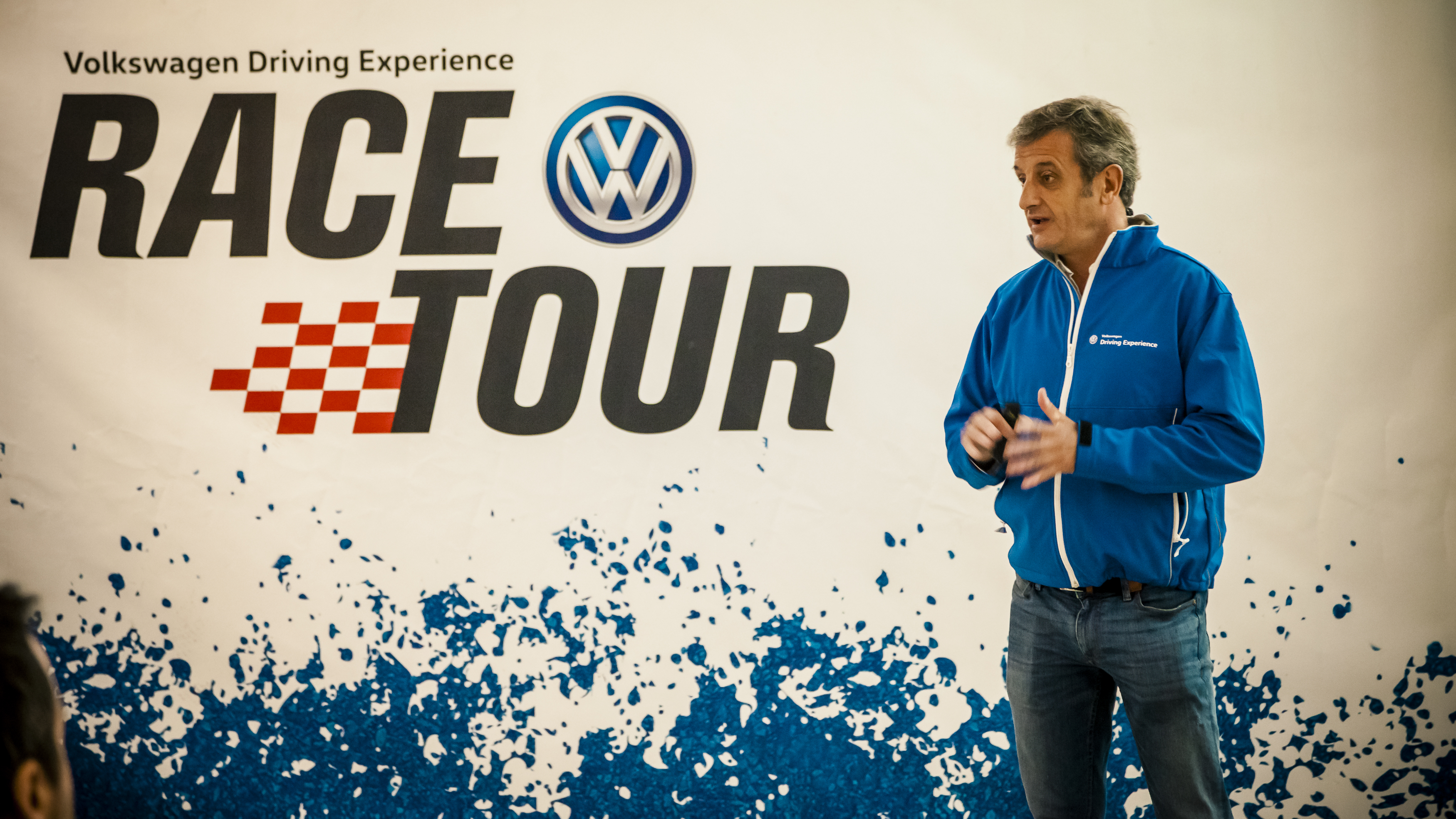 El Volkswagen Race Tour es el original, el que dio origen a esta escuela. En él, el equipo de monitores y especialistas pone especial énfasis en la tecnología, de forma que, como decíamos, los alumnos puedan comprender y experimentar in situ el funcionamiento de los diferentes asistentes que pueden montar los vehículos de Volkswagen. Para ello, organizan una serie de actividades que incluye desde conducción en circuito a bordo de sendos Volkswagen Golf GTI y Golf R hasta pruebas todoterreno con toda la gama SUV de la firma germana.
