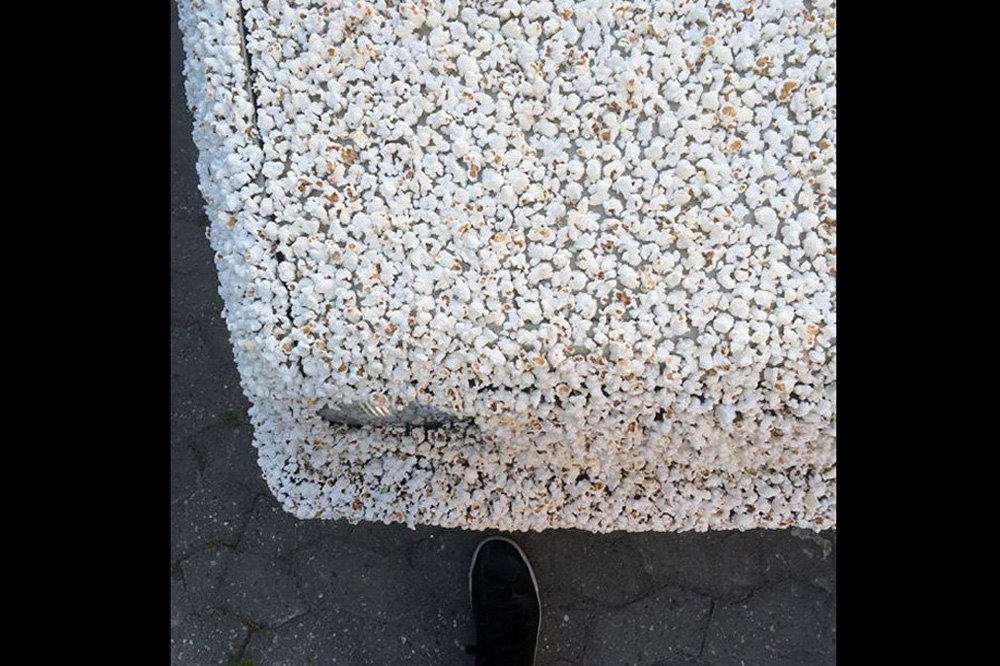 Al igual que en aquella ocasión, para saber más decidimos ponernos en contacto con su creador, Lucas Danehnl, un estudiante de arte que nació en Alemania. Lucas trabajó durante un año entero en este proyecto para la Universidad de Arte de Braunschweig, pegando una por una las palomitas de maíz que calentaba con una máquina de aire, puesto que si las calentaba con aceite no podría haber conseguido este apetitoso resultado.