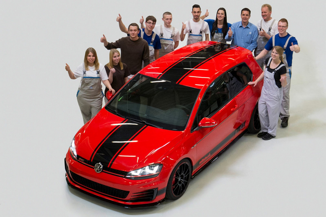Un grupo de 12 aprendices de planta de Wolfsburgo de Volkswagen, con edades comprendidas entre los 18 y los 23 años, se han pasado los últimos nueve meses trabajando en el atractivo modelo que ilustra la noticia, el Volkswagen Golf GTI Wolfsburg Edition. Como no podía ser de otra forma, ha sido presentado hoy en Wörthersee 2014, el evento por excelencia de los fanáticos del Golf GTI (prueba del Volkswagen Golf GTI MK7) en el que las marcas del Grupo VAG también aprovechan para presentar sus novedades.
