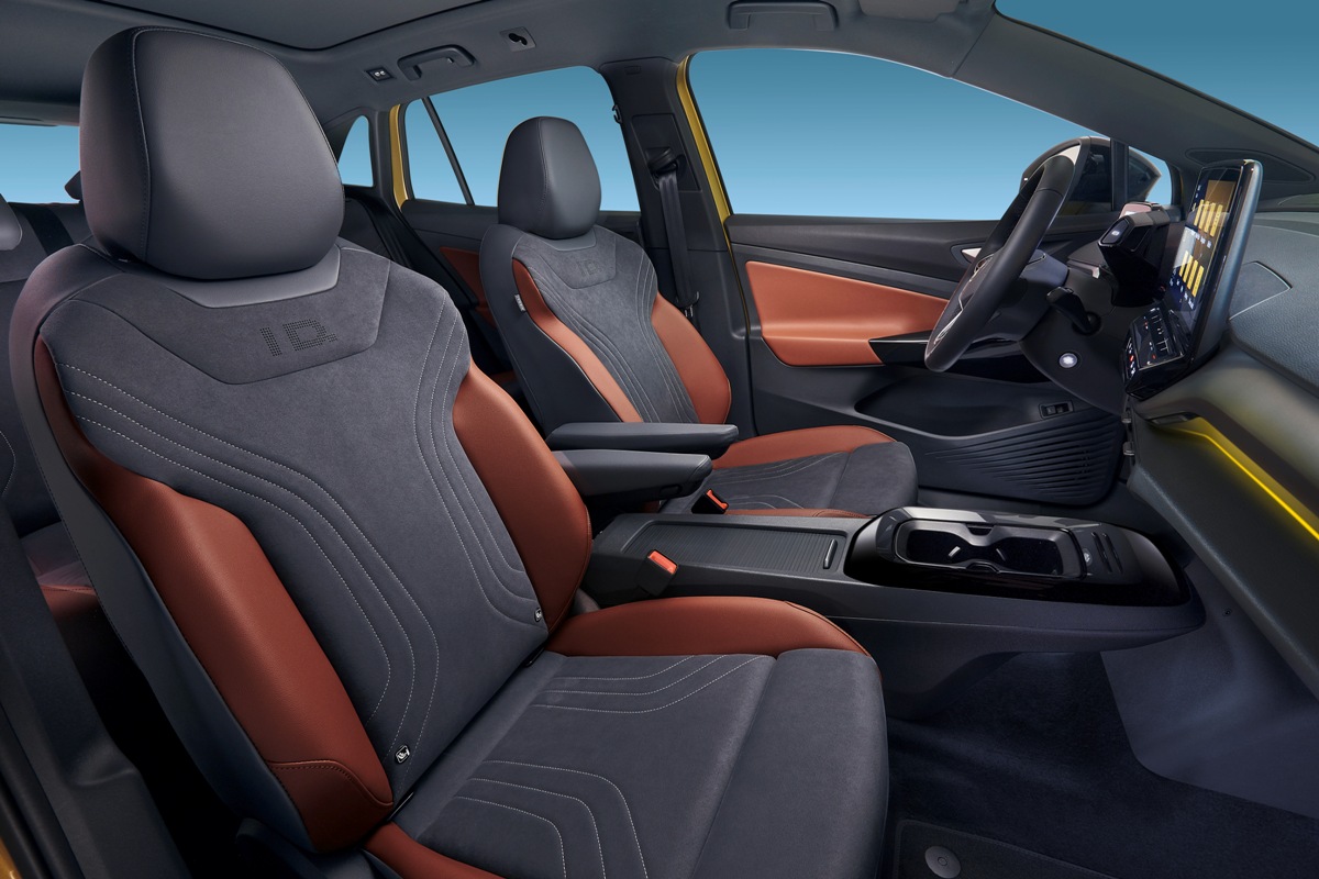 Gracias a los 2,77 metros de distancia entre ejes, el Volkswagen ID.4 2021 ofrece un interior espacioso donde los pasajeros se sientan en asientos ubicados en una posición elevada. Dispone también de un techo panorámico, una consola central de configuración flexible y sin conexión con el tablero de instrumentos, airbag central entre los asientos delanteros, asientos en color Platinum Grey, y volante, columna de dirección y carcasa de la pantalla en colores Piano Black o Electric White purista. La versión ID.4 1 ST Max añade los asientos regulables eléctricamente con apoyo lumbar neumático.