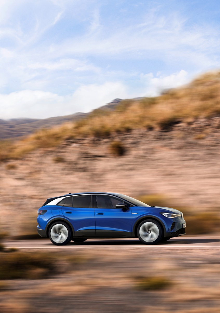Al mismo tiempo, el ID.4 de 204 CV es capaz de alcanzar los 100 km/h desde parado en 8,5 segundos y de registrar una velocidad máxima de 160 km/h. En 2021 ya se ha anunciado una versión aún más potente con tracción a las cuatro ruedas. Para la recarga de la batería, el ID.4 admite carga rápida de corriente continua que le permite obtener 320 km de autonomía en apenas 30 minutos (según WLTP) con una potencia de carga de hasta 125 kW. También admite carga mediante corriente alterna con el cable de modo 3, así como carga doméstica de hasta 11 kW gracias al ID. Charger disponible desde 388 euros (en función de la potencia).