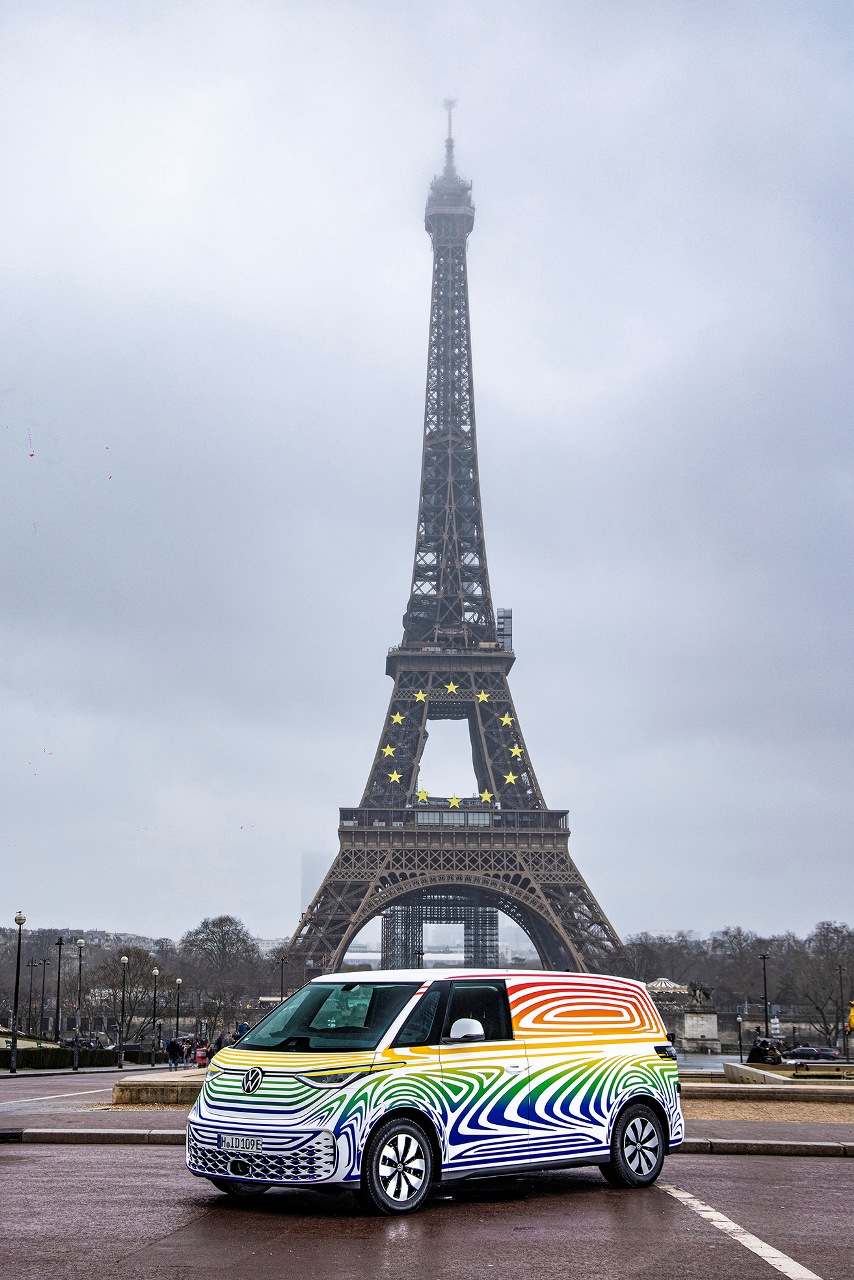 Los prototipos apenas cubren sus formas, lo que deja claro que el modelo de producción será fiel al concept car original. Disponible en dos versiones, el ID. Buzz de pasajeros y el ID. Buzz Cargo, la furgoneta se inspira en los elementos estilísticos del T1, el Bulli original. Entre estos elementos se encuentran los voladizos cortos, la clásica división del diseño de la carrocería del vehículo en un nivel superior y otro inferior, y el inconfundible frontal con su forma en V.