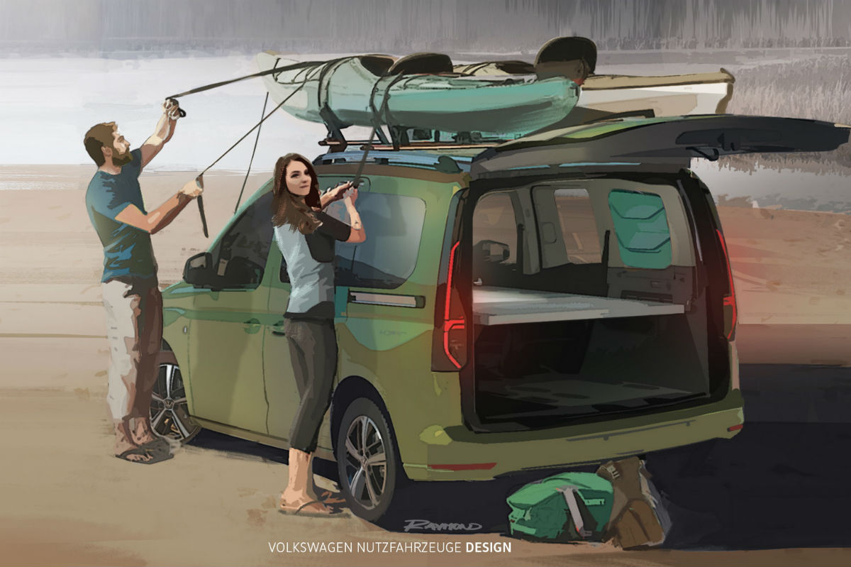 Volkswagen acaba de mostrar las primeras imágenes, todavía como dibujos ilustrados, de la Volkswagen Mini-Camper, la que será la más pequeña de sus furgonetas camperizadas, que está basada en la quinta generación del Caddy y que toma el relevo del Caddy Beach. En septiembre tendrá lugar su presentación oficial.