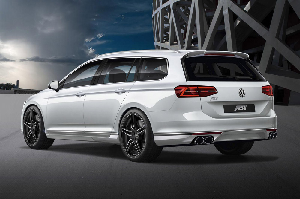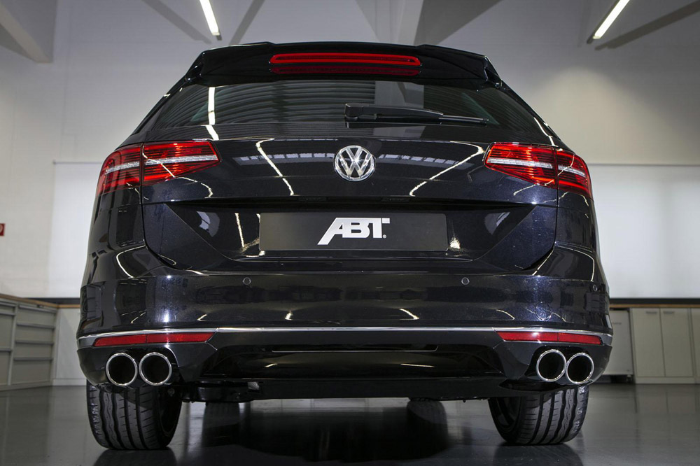 Comparado con el modelo de serie (Prueba Volkswagen Passat 2015), el Passat preparado por ABT Sportsline luce una imagen más agresiva y un toque más deportiva. El paquete de novedades para la carrocería (tanto de la berlina como del familiar) está compuesto por un faldón delantero más prominente, las nuevas taloneras y un pequeño alerón ubicado sobre el portón del maletero.