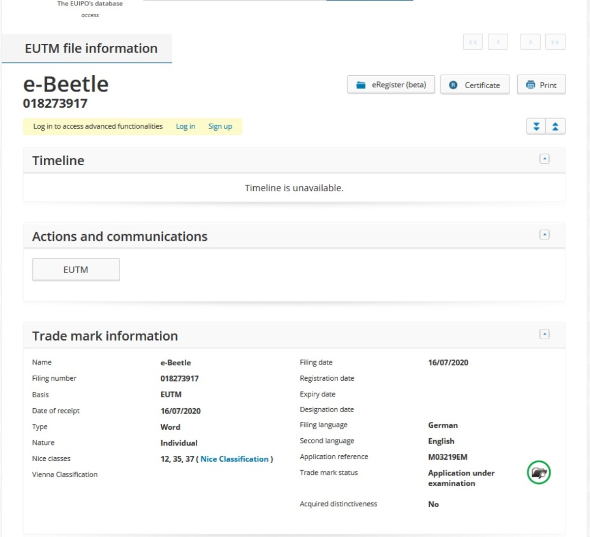 Y es que Volkswagen ha presentado una solicitud de marca registrada para la denominación e-Beetle ante la EUIPO, las siglas en inglés para la Oficina Europea de Propiedad Intelectual. Esta solicitud, que fue presentada la semana pasada, actualmente se encuentra en fase de estudio. Fue descubierto por un miembro del foro VWIDTalk, y este nombre puede utilizarse en casi cualquier aspecto relacionado con la automoción, desde coches hasta características tecnológicas y piezas.