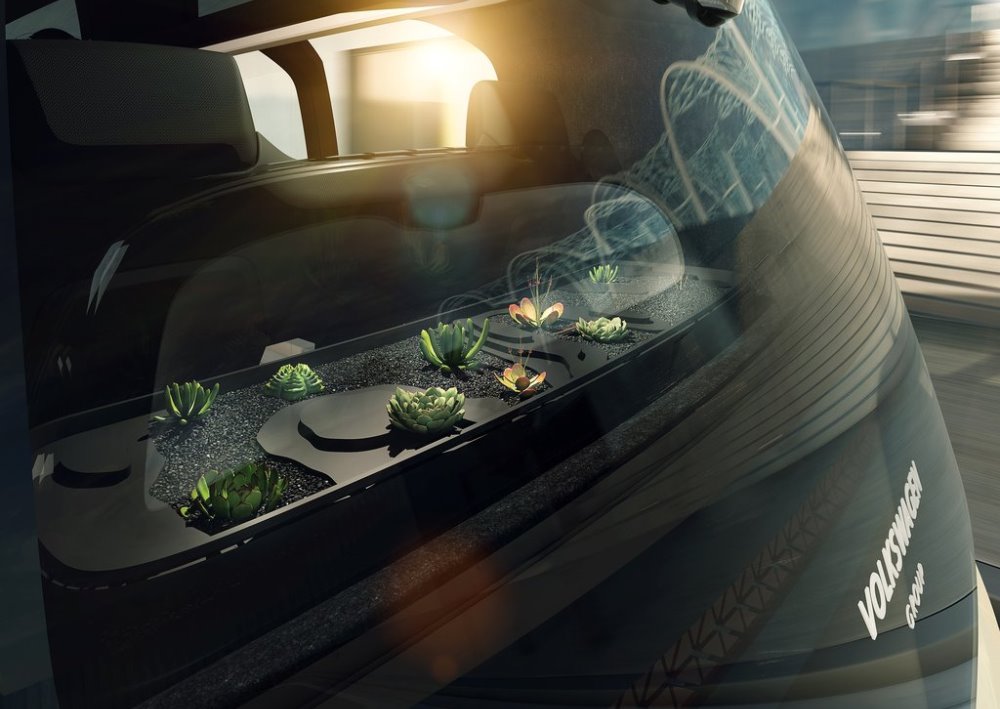Cuatro asientos enfrentados, materiales distintivos como la madera y el cuero y un aspecto futurista es lo que encontramos en el interior del Volkswagen Sedric Concept. Destaca la ausencia de volante, salpicadero o transmisión convencional, ya que todo ha sido dispuesto con el fin de ofrecer espacio para sus ocupantes. Además, encontramos un pequeño jardín detrás de los asientos para purificar el aire en el interior.