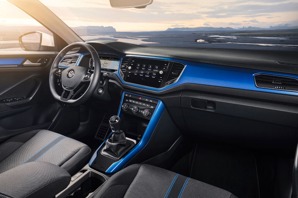 Como los últimos modelos en llegar -también lo hará el Ibiza, el Ateca o el León-, el VW T-Roc puede equipar el cuadro Active Info Display. También los sistemas de infoentretenimiento de hasta 8 pulgadas y los últimos avances -imaginamos que incluye el control gestual-. Cómo no se puede equipar App Connect, que soporta Mirror Link, Apple Car Play y Android Auto. Destaca la opción gracias a la cual se puede instalar unas molduras que recorren el salpicadero, la consola, el cuadro de instrumentos y los paneles de las puertas del color de la carrocería -carrocería que como en las imágenes puede ser bitono, algo muy de moda en todos los fabricantes-.