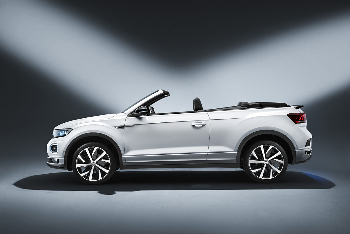 El Volkswagen T-Roc descapotable es 34 mm más largo, 51 mm más bajo, 8 mm más estrecho y tiene una distancia entre ejes 27 mm más amplia.
