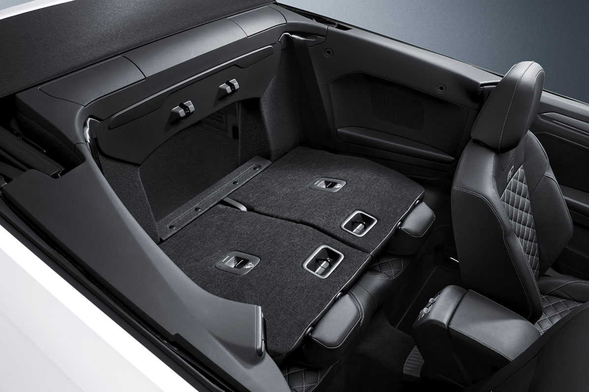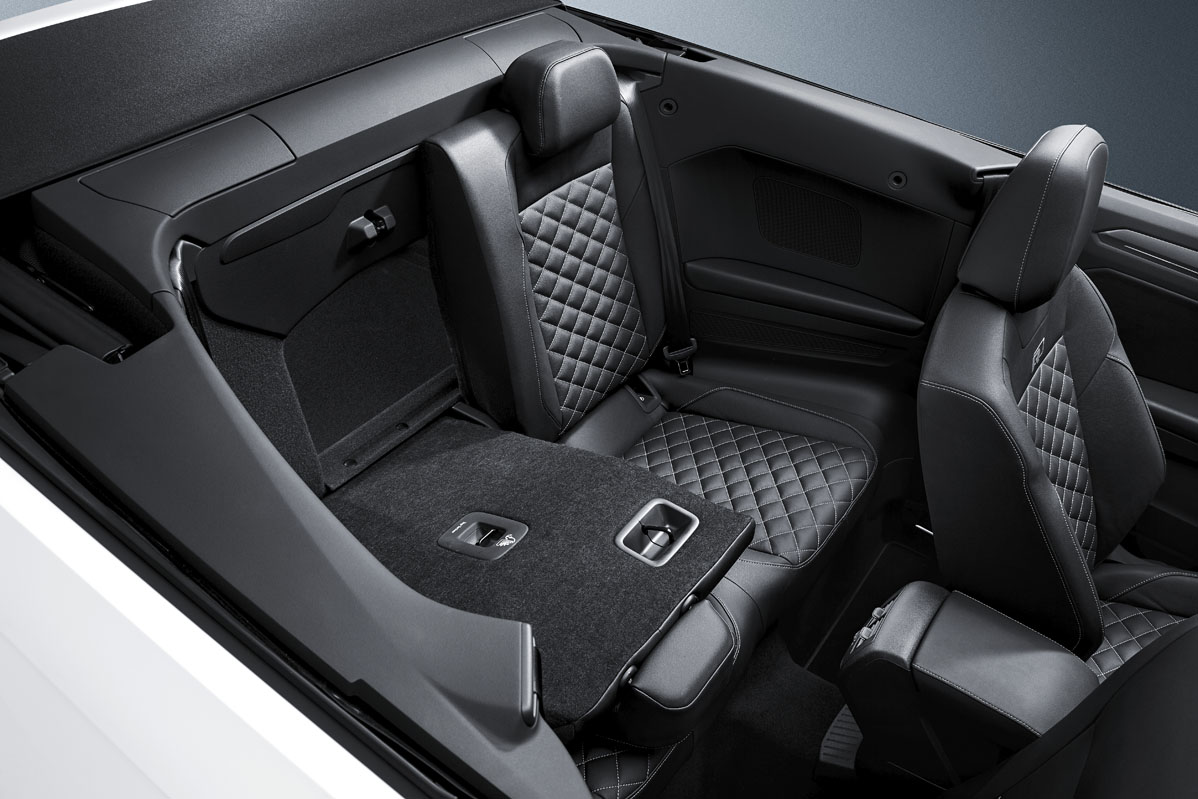 Su carrocería de dos puertas mantiene el diseño de la versión cerrada, a pesar de un gran cambio: el techo de lona. Éste puede plegarse y desplegarse en solo nueve segundos y a una velocidad que no supere los 30 km/h. Esta capota compuesta por lona, forro interior, varillas y acolchado puede abrirse con tan solo pulsar el botón de la consola, el del mando o el tirador de la puerta. El compartimento para albergar este elemento, obviamente, afecta a la capacidad de carga, que se ha visto reducida en 161 litros para cubicar unos más que dignos 284 litros.
