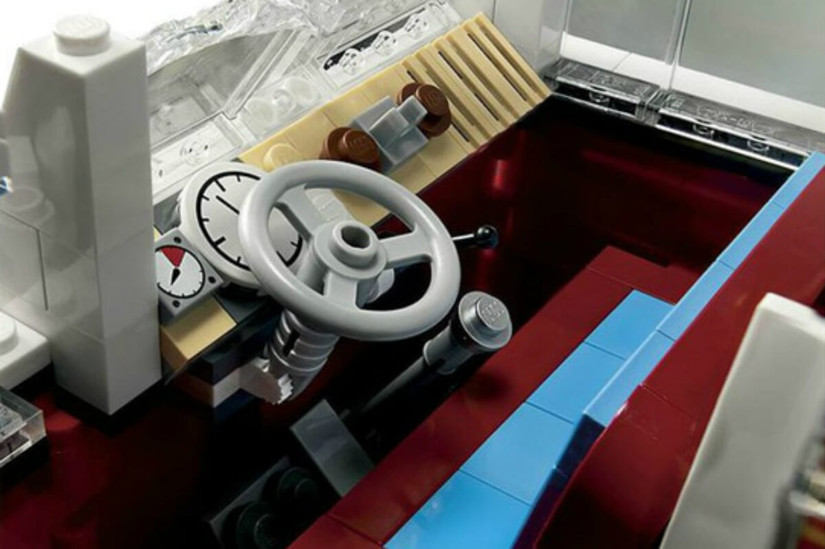Por último no podemos ignorar los detalles decorativos que dan personalidad a la Volkswagen T1 de Lego. Nos referimos, claro está, a las cortinas a cuadros, a la planta ubicada en la parte de atrás, a la camiseta con el clásico lema hippie adaptado para la ocasión (“Make Lego models, not war”, es decir, “Haz Legos, no la guerra”) y al cuadro surfero que nos recuerda que los apasionados de este deporte también lo eran de esta mítica furgoneta.