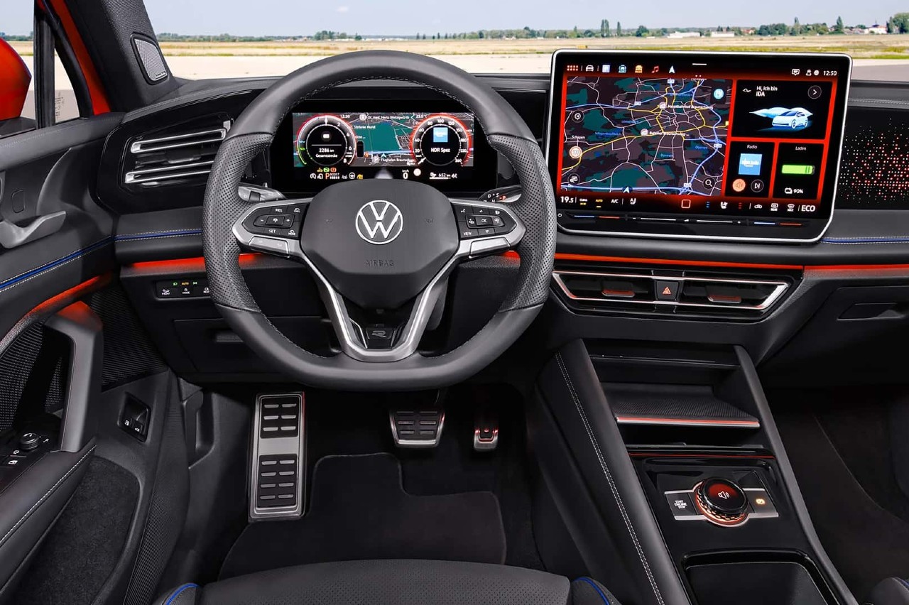 Por último, el R-Line añade bandeja de carga por inducción para smartphones, sistema de navegación con pantalla de 12,9″ y Faros IQ.Light HD Matrix LED con Dynamic Light Assist.