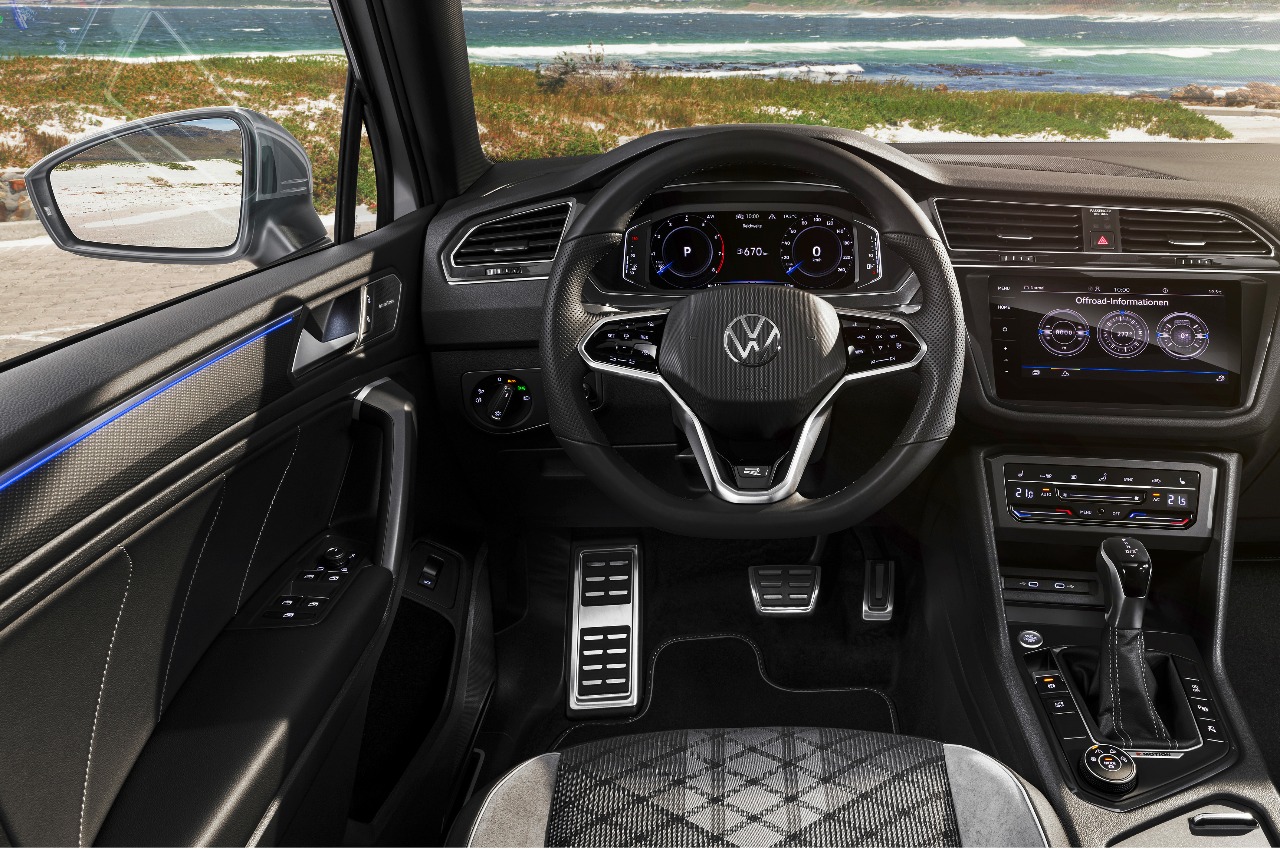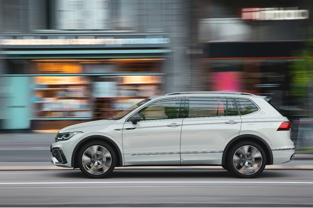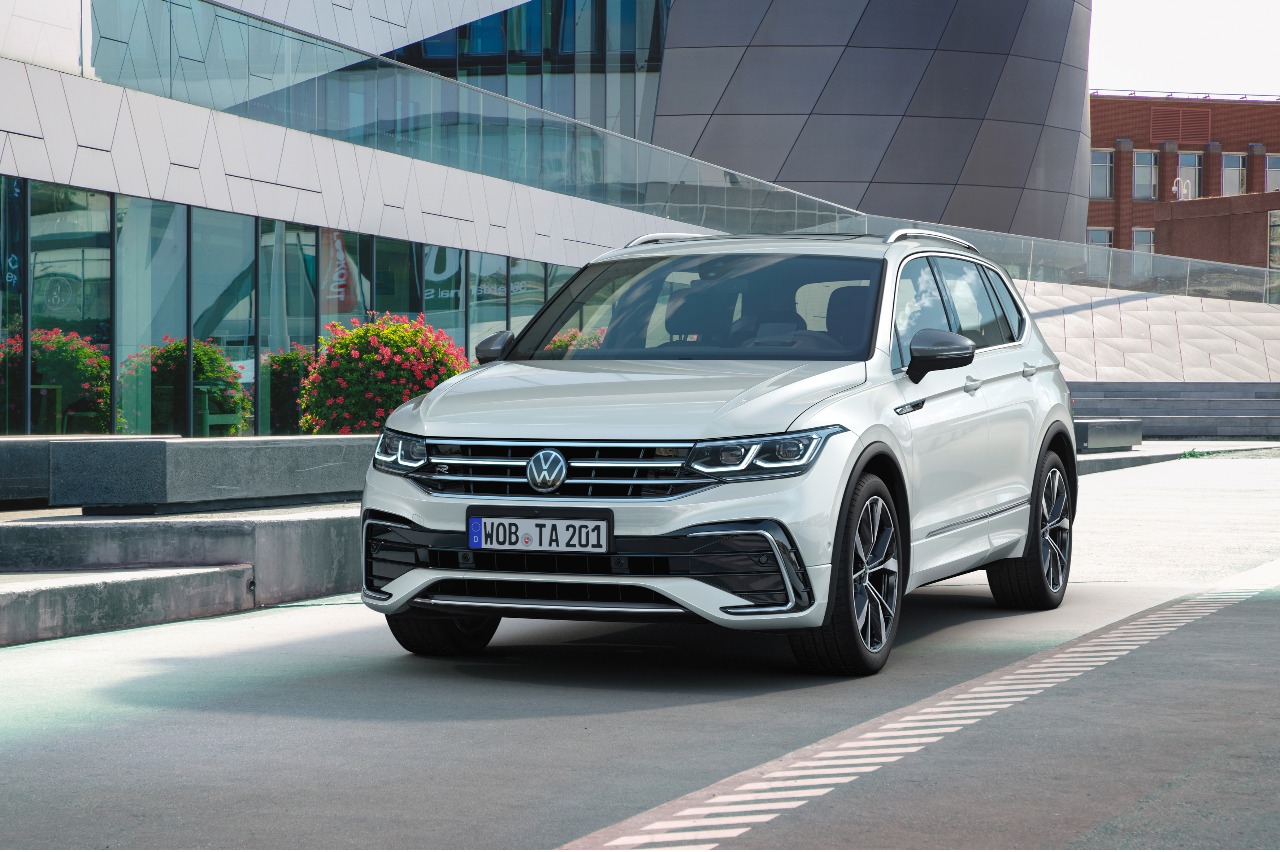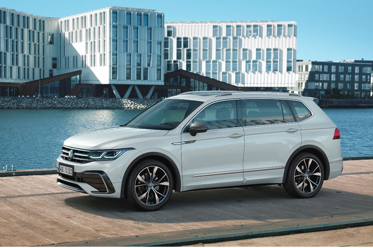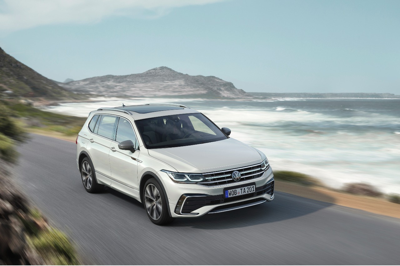 Por primera vez, el Volkswagen Tiguan Allspace 2021 se puede solicitar (como opción) con faros matriciales led 'IQ.Light', cuenta con función de barrido de los intermitentes led e incorpora la conducción semiautónoma con el sistema 'IQ.Drive Travel Assist'. Así, este es capaz de asumir dirección, frenado y aceleración desde 0 km/h con transmisión de doble embrague, o desde 30 km/h con manual.