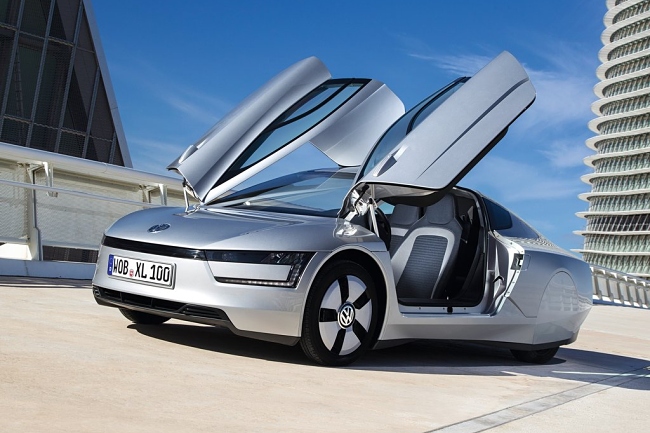 El Volkswagen XL1 es el coche más eficiente del mundo. Para poder ostentar este título, emplea materiales ligeros en su construcción –pesa 795 kilogramos-, posee una aerodinámica carrocería –cx 0,186- y un sistema híbrido como planta motriz. Con una longitud de 3,89 metros, una altura de 1,16 y una anchura de 1,67, solo puede ofrecer espacio en su habitáculo para dos pasajeros. Para que os hagáis una idea, es más bajo que un Porsche Boxster S.