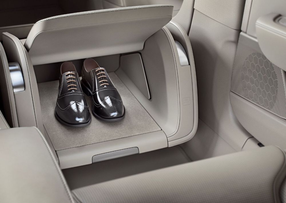 Incorpora un gran compartimento donde se pueden almacenar objetos, así como un reposapiés ajustable y un sistema de infoentretenimiento integrado con una gran pantalla. También encontramos un compartimento refrigerado y un conjunto de vasos de cristal hecho a mano por el artesano sueco Orrefors. Por último, un techo panorámico de cristal y mesas de trabajo plegables son el colofón para el S90 Excellence.