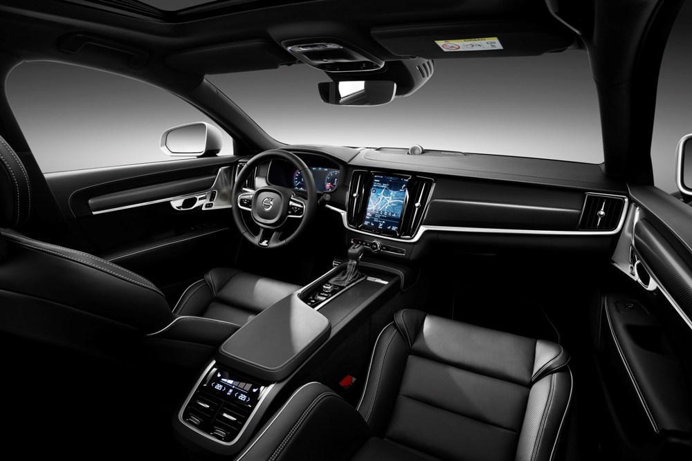El interior del Volvo S90 y V90 R-Design, por su parte, estrena una nueva decoración en símil fíbra de carbono y pedales deportivos metálicos. Ambos modelos también reciben asientos de corte deportivo, cuero perforado con costuras en contraste y un volante exclusivo, junto con nuevos alfombrillas y un paquete de iluminación creado específicamente para esta versión.