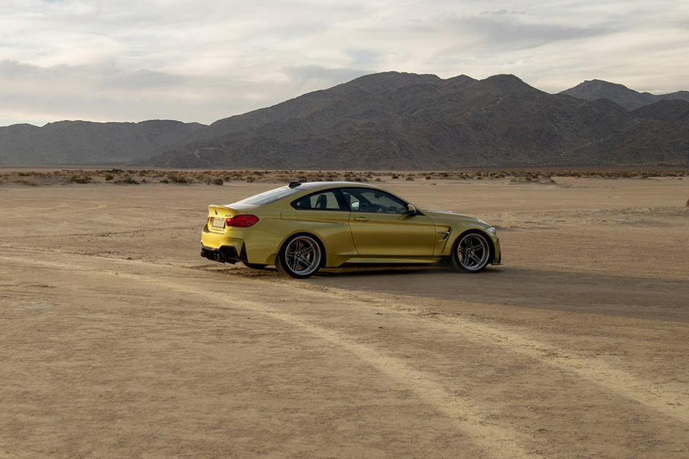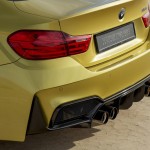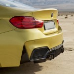 La preparación que nos presenta Vorsteiner para el BMW M4 Coupé está compuesta por diversos componentes que han sido retocados o rediseñados por completo. Este es el caso del parachoques delantero, de las taloneras o del paragolpes trasero, que ahora lucen una imagen mucho más agresiva y han sido fabricados empleando fibra de carbono. No podemos olvidarnos de las llantas forjadas de tres piezas de 20 pulgadas de diámetro, que calzan neumáticos Pirelli de 275 de ancho en el eje delantero y de 345 en el trasero.