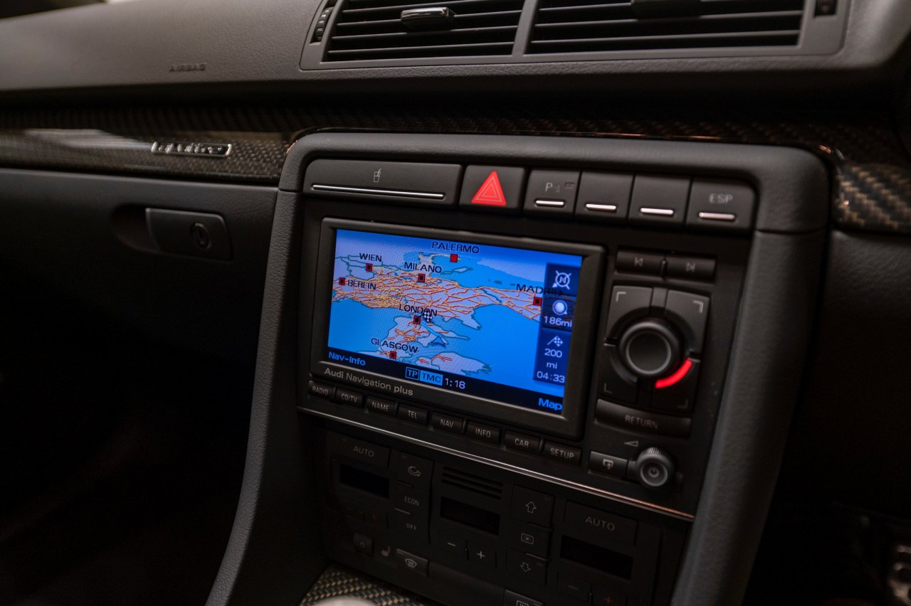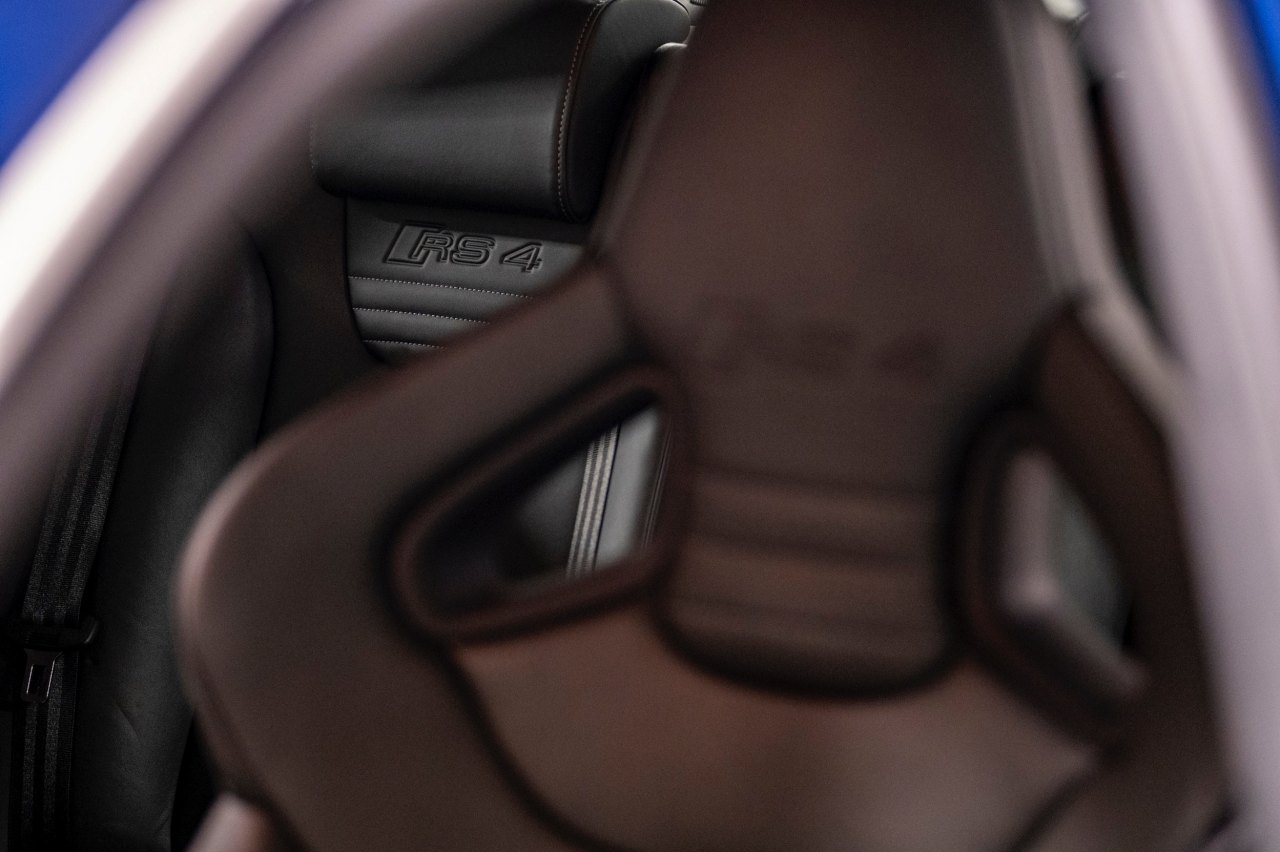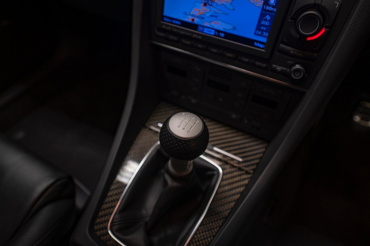 Este Audi está terminado en color Azul Mugello sobre un interior de cuero negro con asientos de tipo baquet, volante deportivo con fondo plano y molduras de carbono. Bajo el capó, un motor V8 FSI de 4.2 litros con 420 CV de potencia y 430 Nm de par, ligado a un cambio manual de seis velocidades y a un sistema de tracción total quattro.