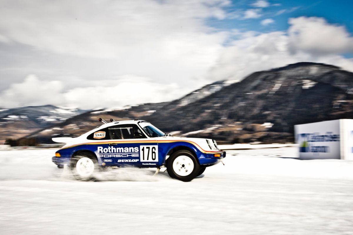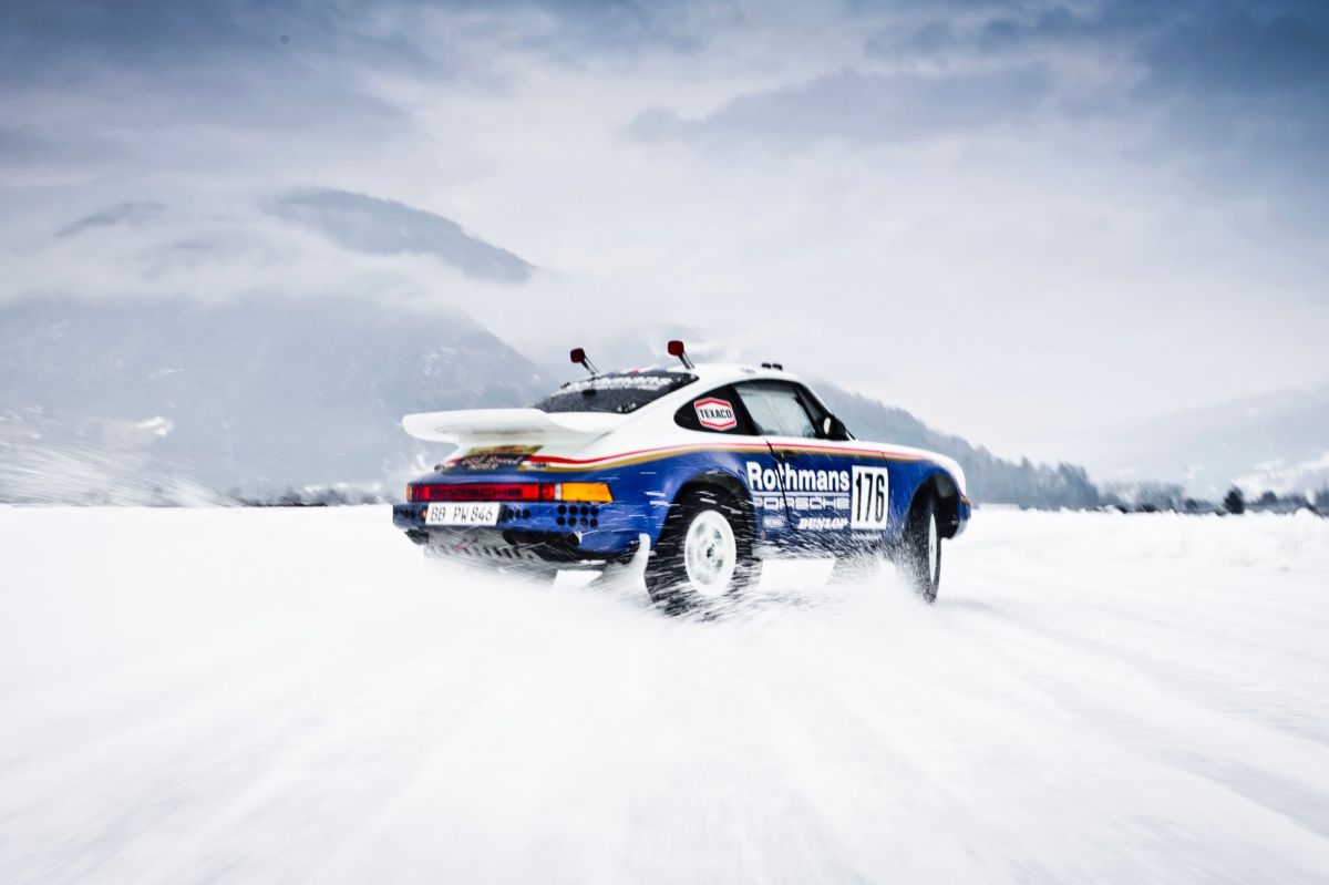 En una sola vuelta al circuito improvisado sobre hielo, Röhrl consigue dominar al 953 con sus pies bailando sobre los pedales, logrado unas cruzadas espectaculares sin esfuerzo aparente. El piloto conduce con la misma precisión que hace varias décadas, cuando luchaba por el título del Campeonato del Mundo. El inconfundible sonido del motor bóxer retumba en el valle, algo que Walter define como un elemento clave del coche: “Para cualquier amante del automovilismo de competición, esta melodía es un gran aliciente. Cuando vas al volante, es un auténtico estímulo”.