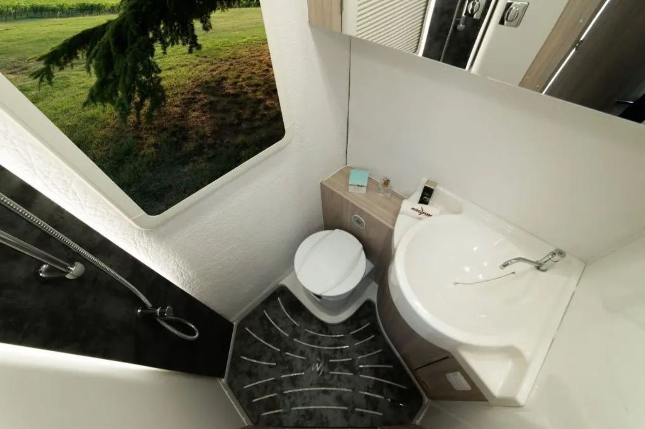 La Oasi 540 está basada en el chasis de una furgoneta Fiat Ducato con una longitud de 5.420 mm y una distancia entre ejes de 3.000 mm, al que se le ha instalado un monocasco de fibra de vidrio. Esto hace que, por sus dimensiones, sea un vehículo compacto ideal para clientes que están iniciando su andadura en el mundo del caravaning. Y, a pesar de que este tipo de casas rodantes pequeñas suelen renunciar a muchas de sus características, Wingamm ha hecho un gran trabajo de ingeniería para adaptar todo lo necesario al tamaño de la autocaravana.