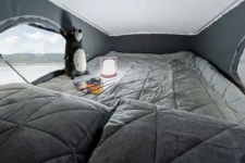 Winnebago ha instalado en el interior de la Roam un sofá convertible. Este complemento se convierte en una cama con tan solo tocar un botón, una función que permite facilitar la conversión para personas con movilidad reducida. Además, hay suficiente espacio en su interior para moverse con la silla y un baño privado con ducha integrada y un inodoro estilo cassette.