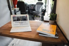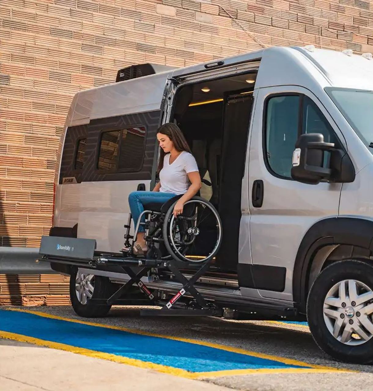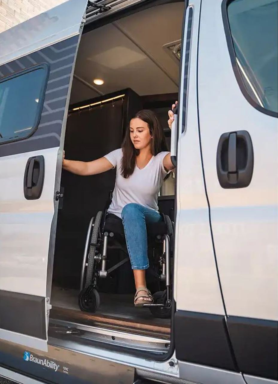 Una de las características principales de la Winnebago Roam es su elevador de sillas de ruedas con control remoto. Este elevador Braun UVL facilita el acceso y la salida del vehículo e incluye un mando a distancia inalámbrico. También hay puntos de anclaje que aseguran la silla de ruedas para que el usuario pueda utilizarla como otro asiento mientras viaja en la camper van.
